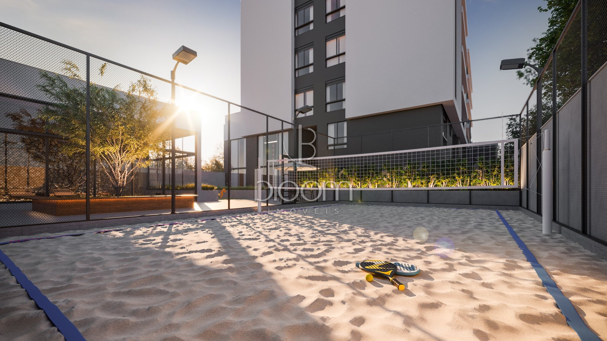 Port-cochère, Hall de entrada, Central de entregas e delivery, Praça central, Sala de reuniões, Espaço relax, Brinquedoteca, Academia, Salão de festas, Lounge externo, Playground, Espaço pet, Quadra de beach, Piscina coberta, Bicicletário com oficina, Gerador de emergência, Sistema de segurança entregue instalado, Eclusa de pedestres, serviço e veículos, Vestiário e copa para funcionários, Carregador para carro elétrico, Vagas para visitantes.