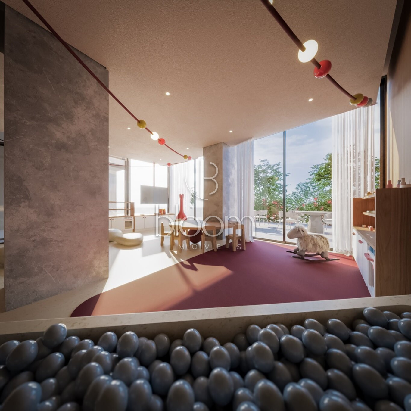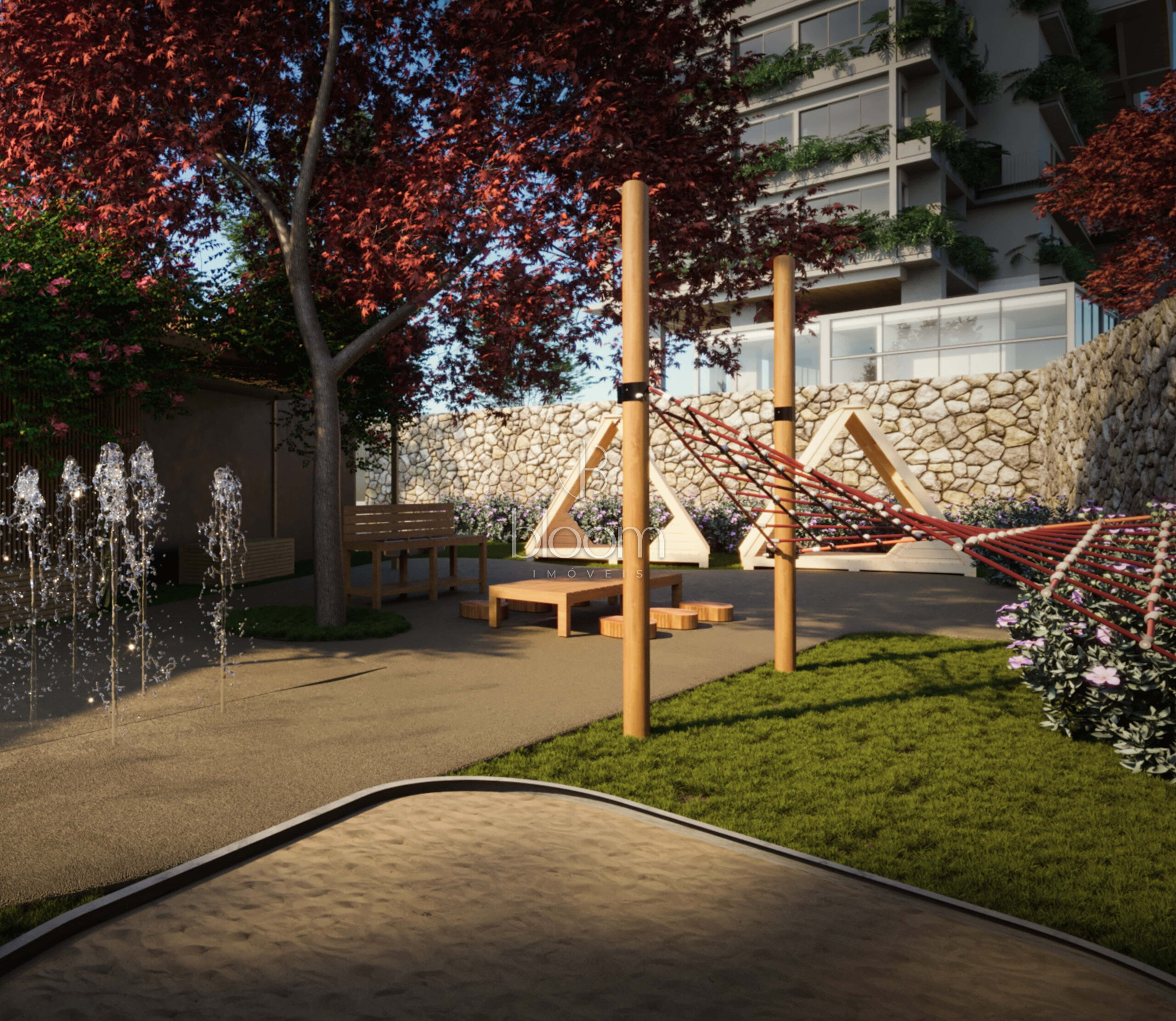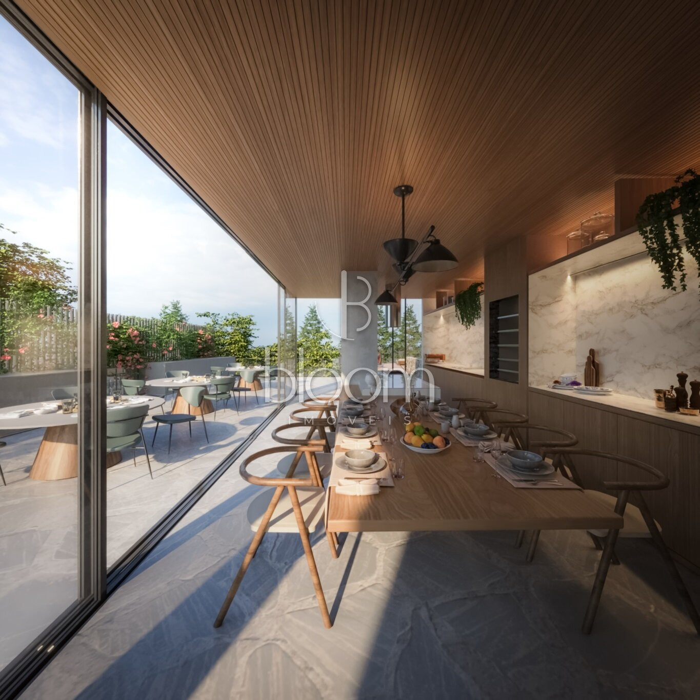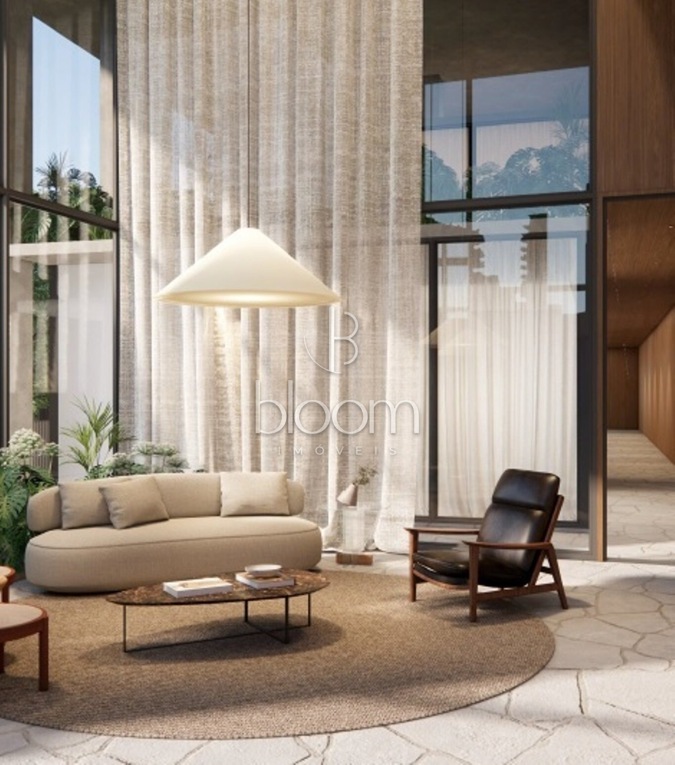 Port cochère, Guarita social, Guarita de serviço, Lobby, Salão de festas, Espaço gourmet, Playground, Brinquedoteca, Acquaplay, Quadra beach tennis, Lounge de areia, Mirante para o bosque, Lounge do mirante, Pomar, Office, Horta, Estar, Fitness, Piscina semi-olímpica, SPA com foyer, Sauna úmida e seca, Espaço gourmet externo, Terraço funcional, Sala multifuncional, Lounge café, Sala de massagem, Hidromassagem, Banho horizontal, Espaçoo mindfulness, Terraço com lareira, Bicicletário, Vagas visitantes.