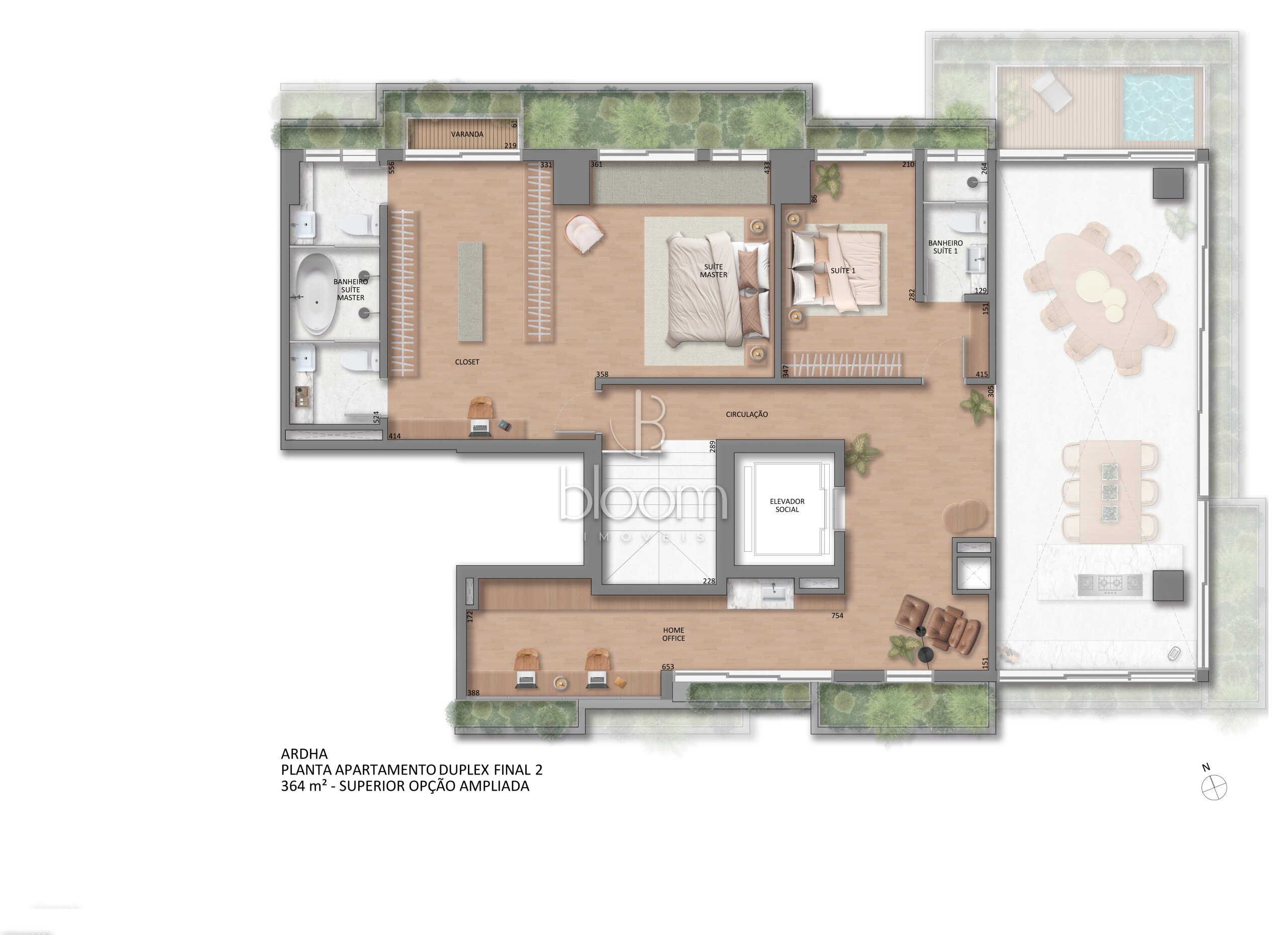 Hall acesso exclusivo Surya e Ardha, Terraço lounge, Espaço gourmet, Piscina externa, Solarium, Lounge, Escalda pés, Estação de chá, Haloterapia, Sauna úmida, Hidromassagem, Sala multifuncional, Estar.