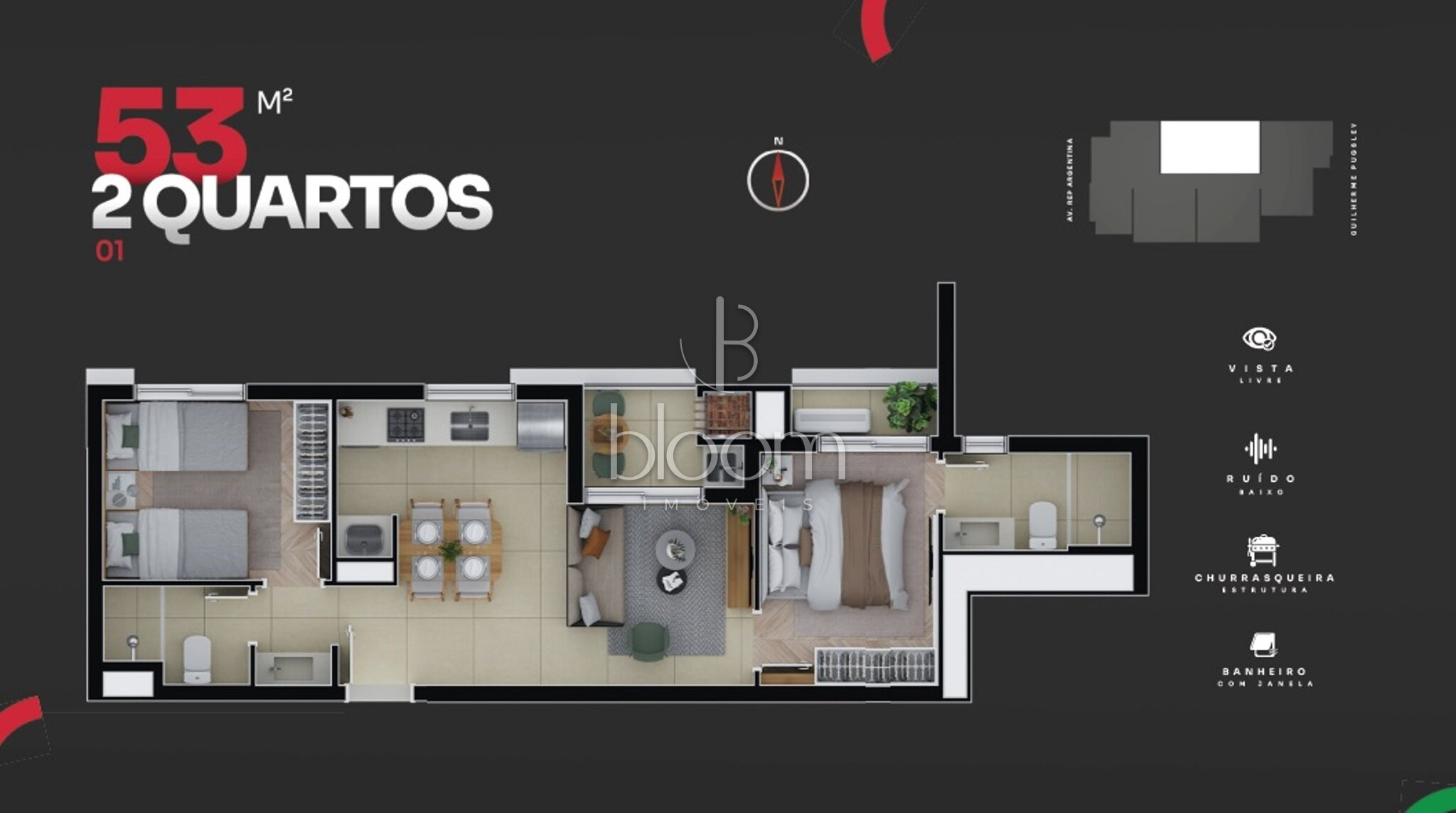 53,99 m² privativos