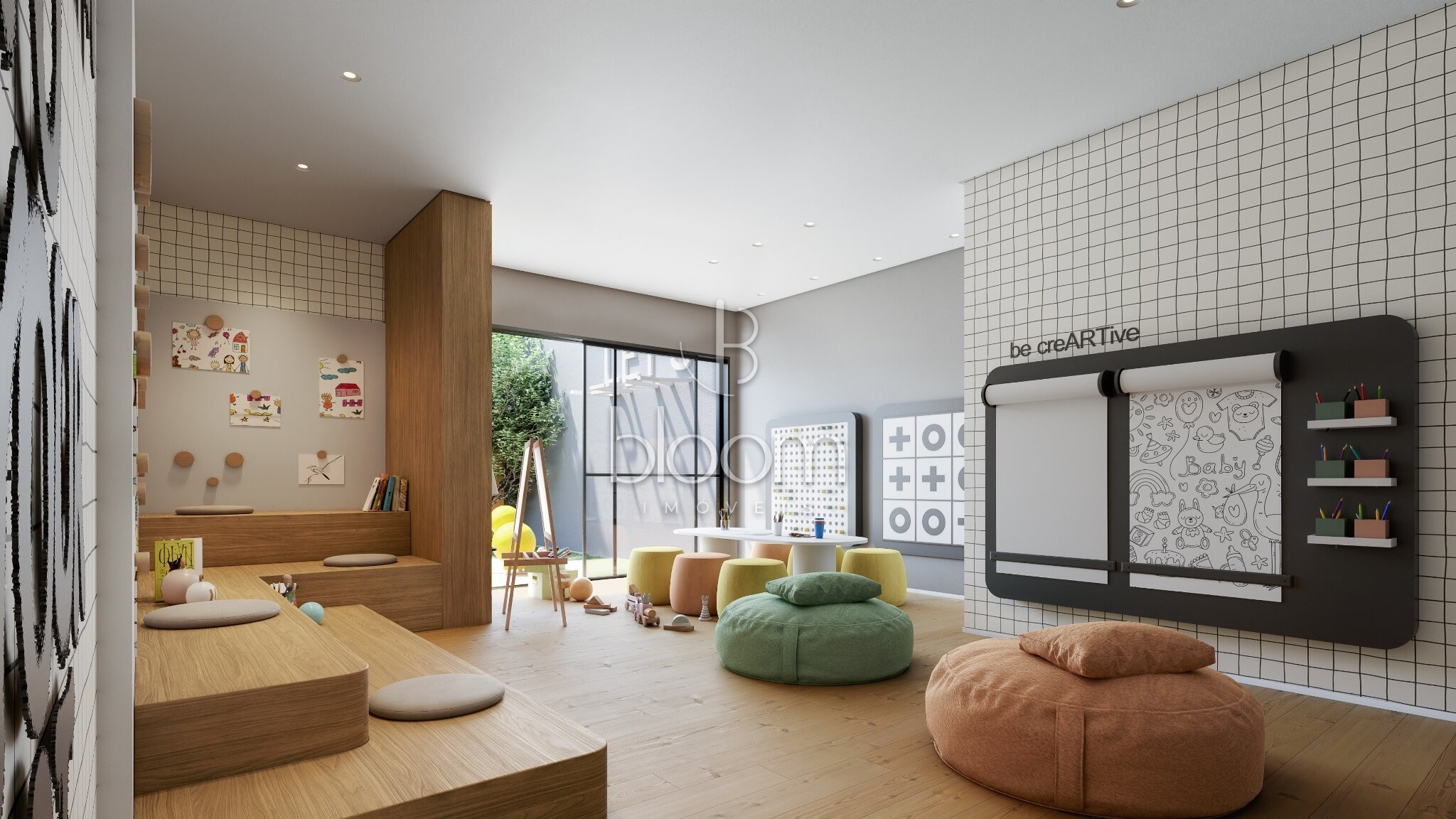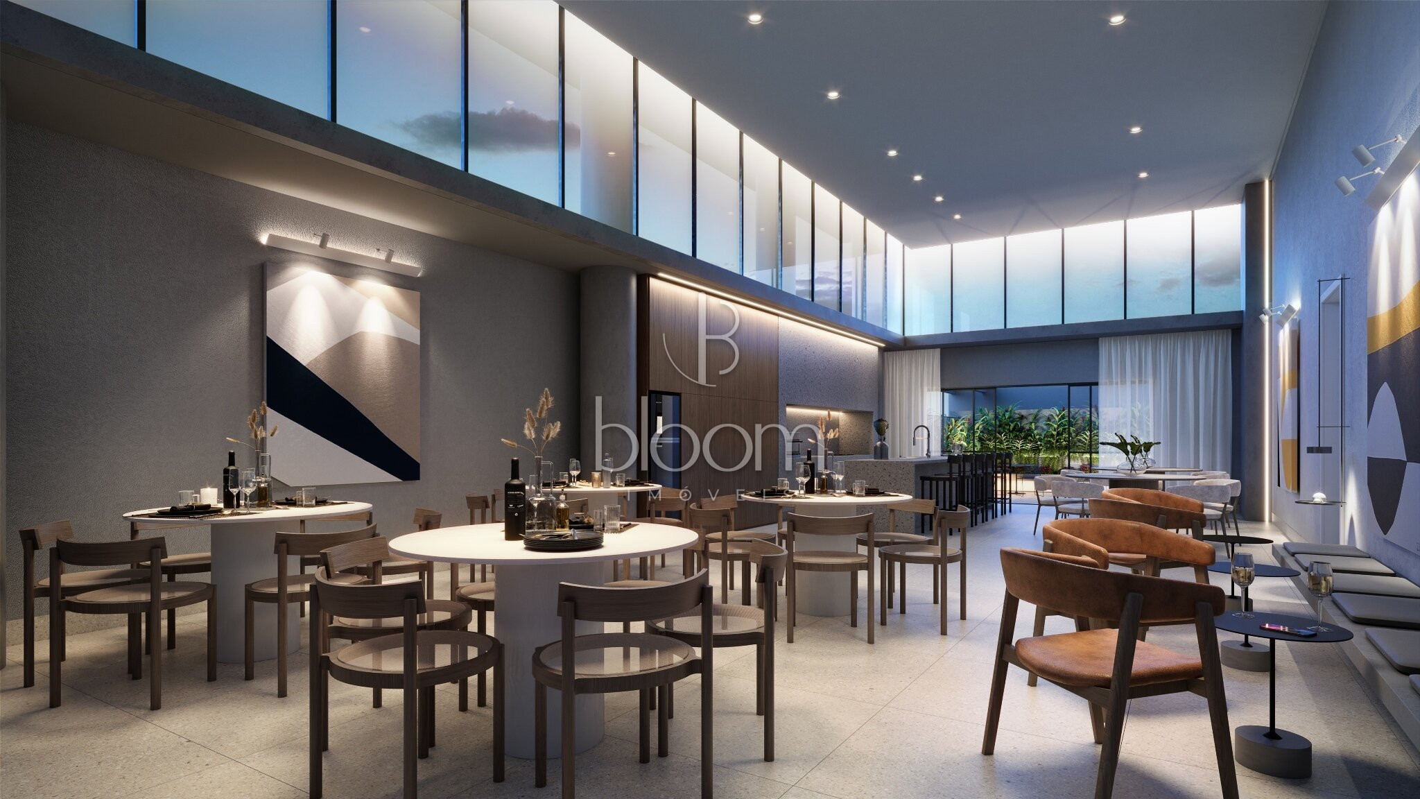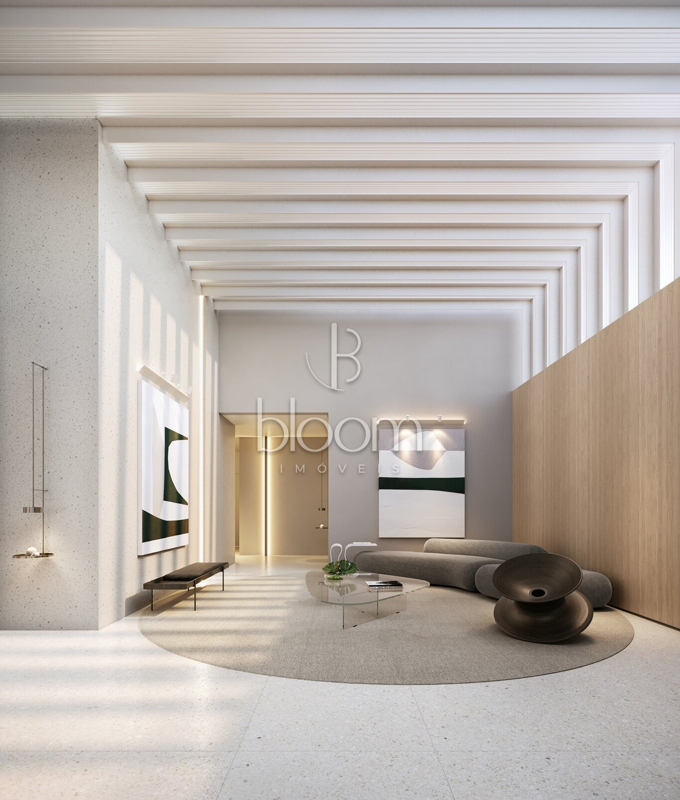Guarita. Hall de entrada, Central de entregas e delivery, Espaço gourmet, Lounge externo, Playground, Brinquedoteca, Copa e bwc para funcionários, Sala de jogos, Espaço fitness, Terraço coberto, Praça central, Piscina coberta aquecida, Solarium, Salão de festas.