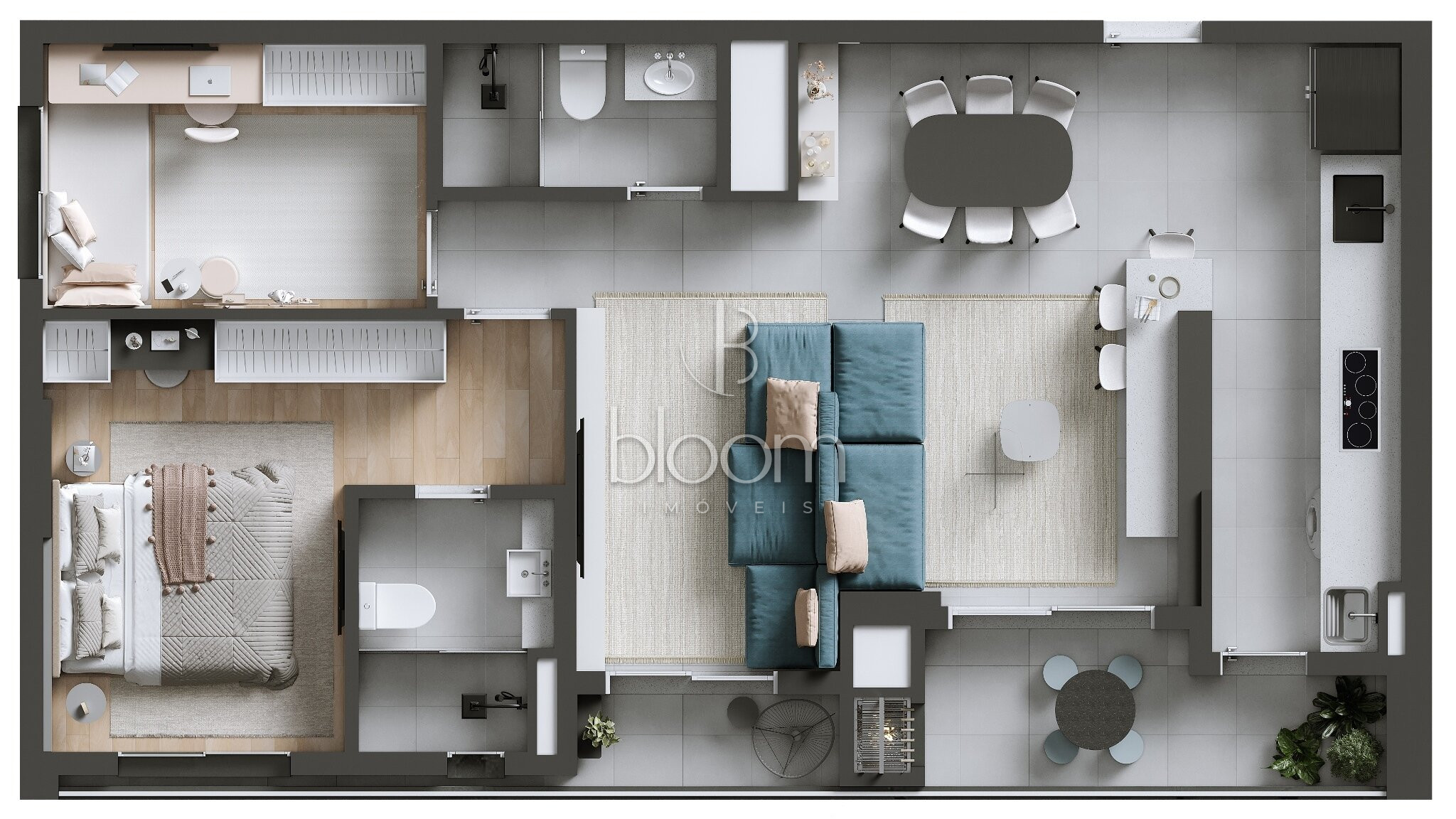 *Opção de planta com living ampliado ficando com 2 quartos (1 suíte)