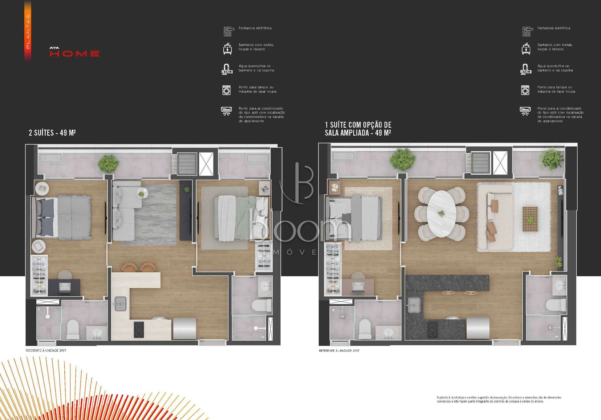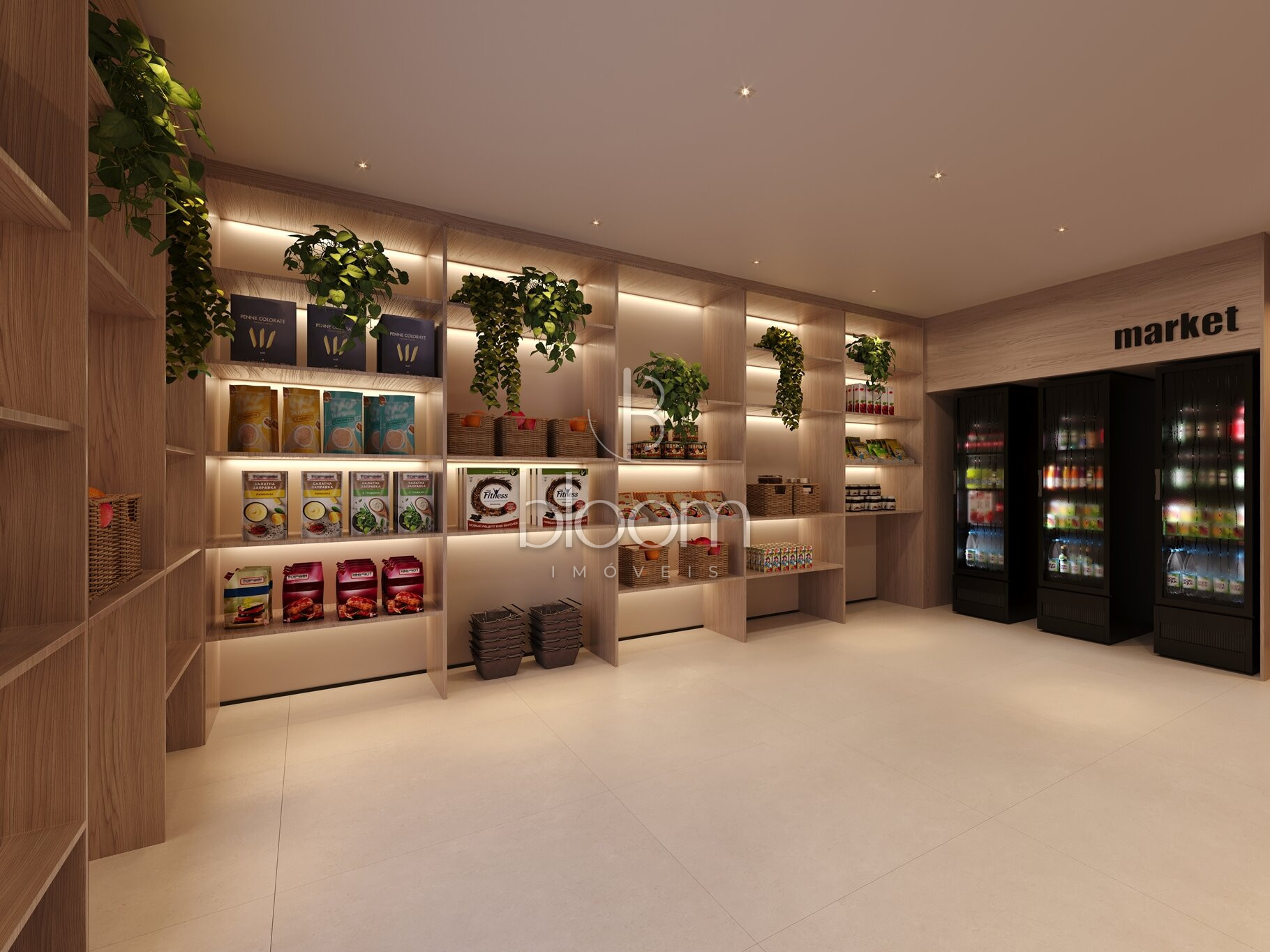 Hall de entrada, Central de entregas e delivery, Coworking, Sala de reuniões, Mini market, Lavanderia comum, PUB, Sala de jogos, Galeria de lojas, Espaço gourmet, Salão de festas, Terraço externo, Academia, Lounge externo, Solarium, Piscina descoberta.
