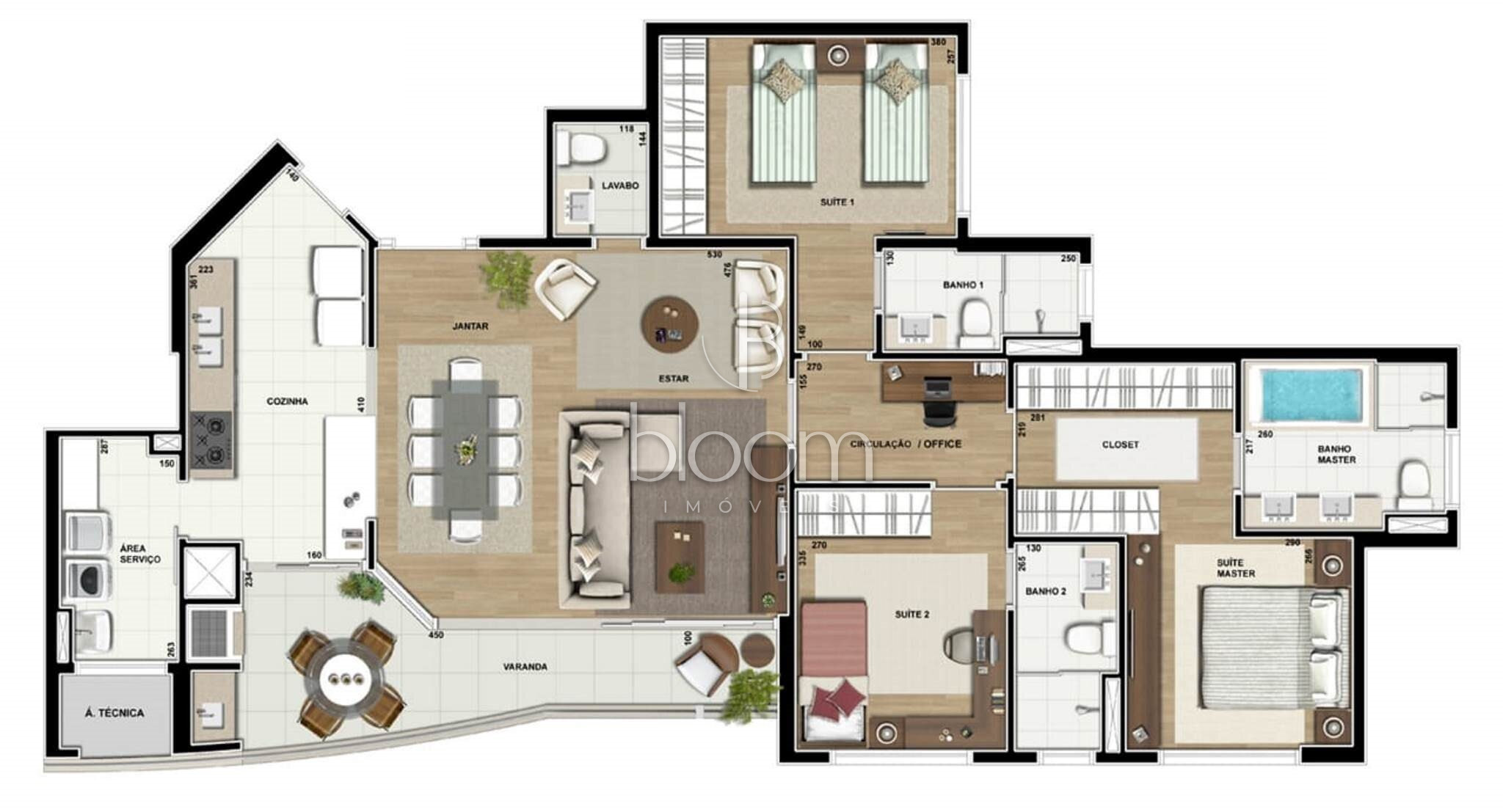 Suíte master com HIDROMASSAGEM, cuba dupla e AMPLO CLOSET