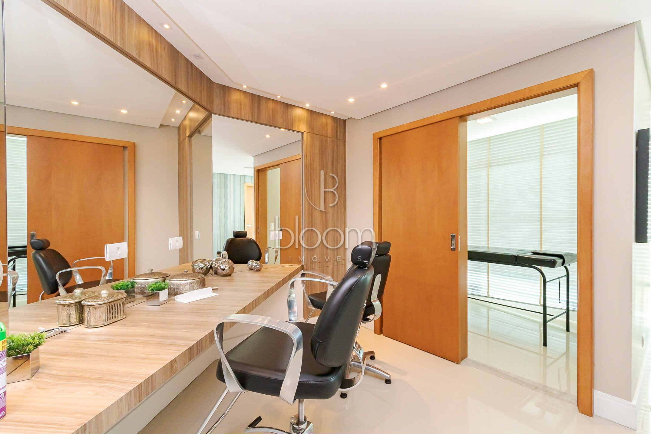 Guarita blindada, Cerca de vidro, Hall de entrada, Portaria 24hs, Praça central, Raia coberta e aquecida, Solarium, Salão de festas, Espaço gourmet, Fitness, Salão de beleza, Brinquedoteca, Playground, Quadra poliesportiva, Salão de jogos, Sauna, Bicicletário.