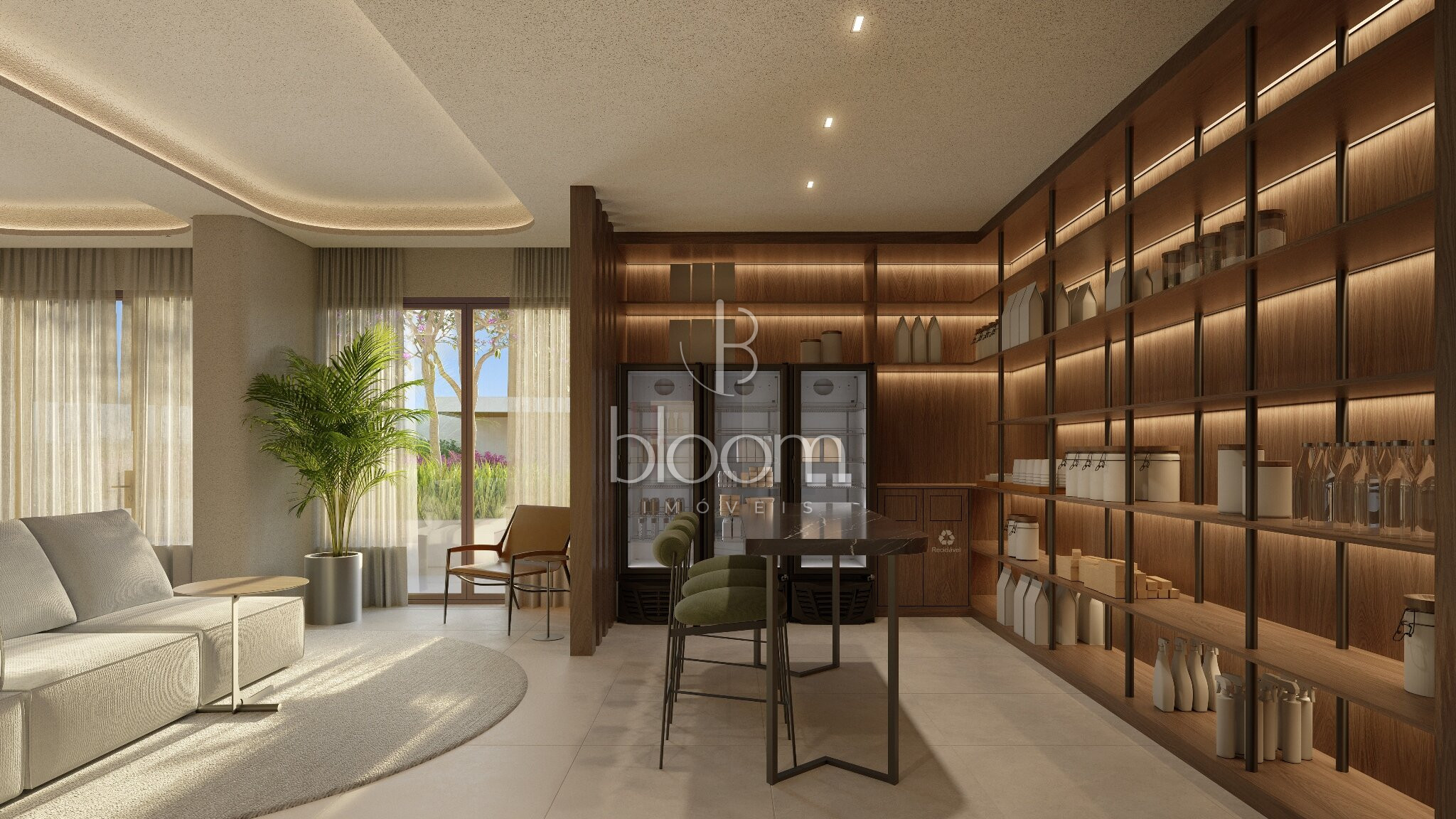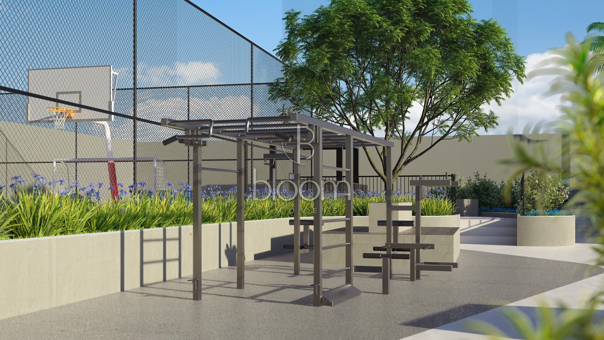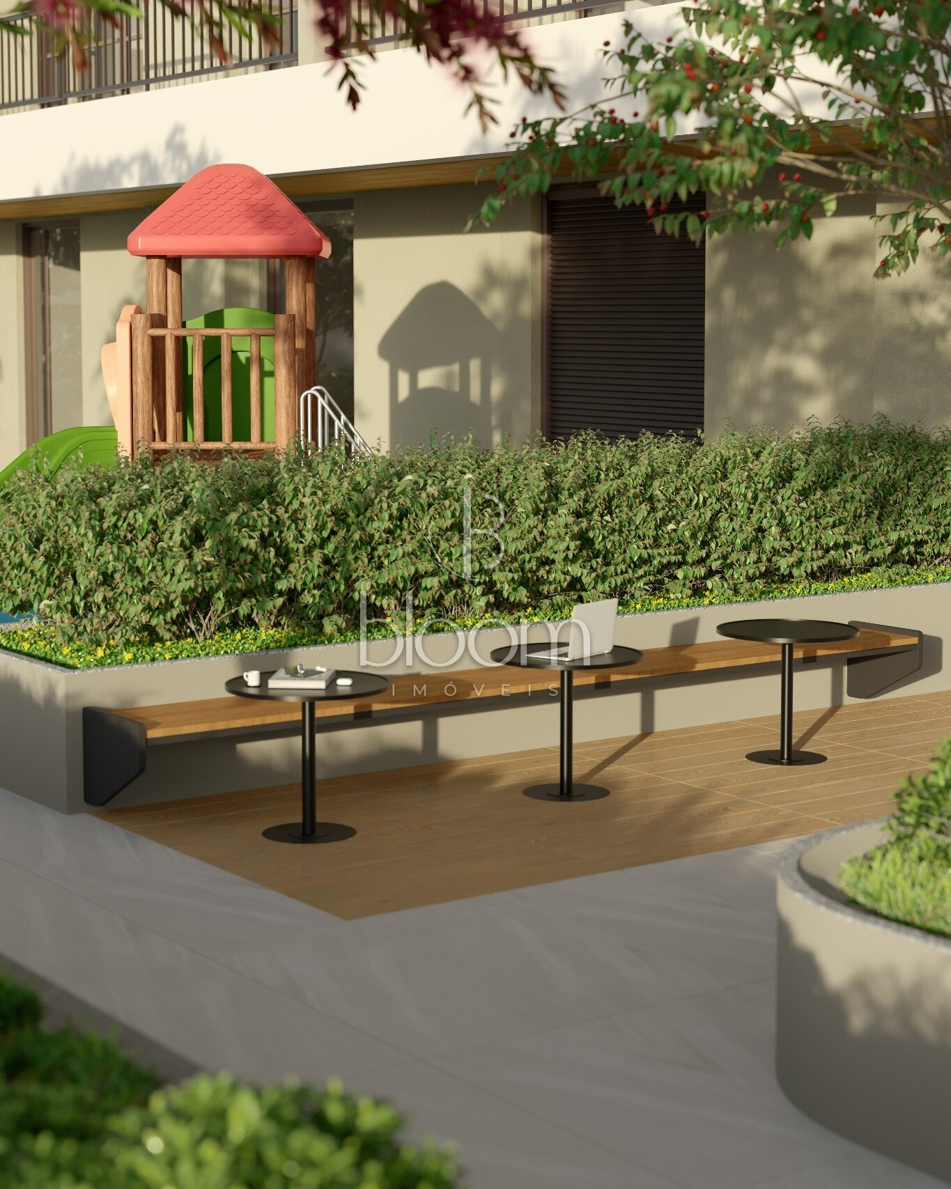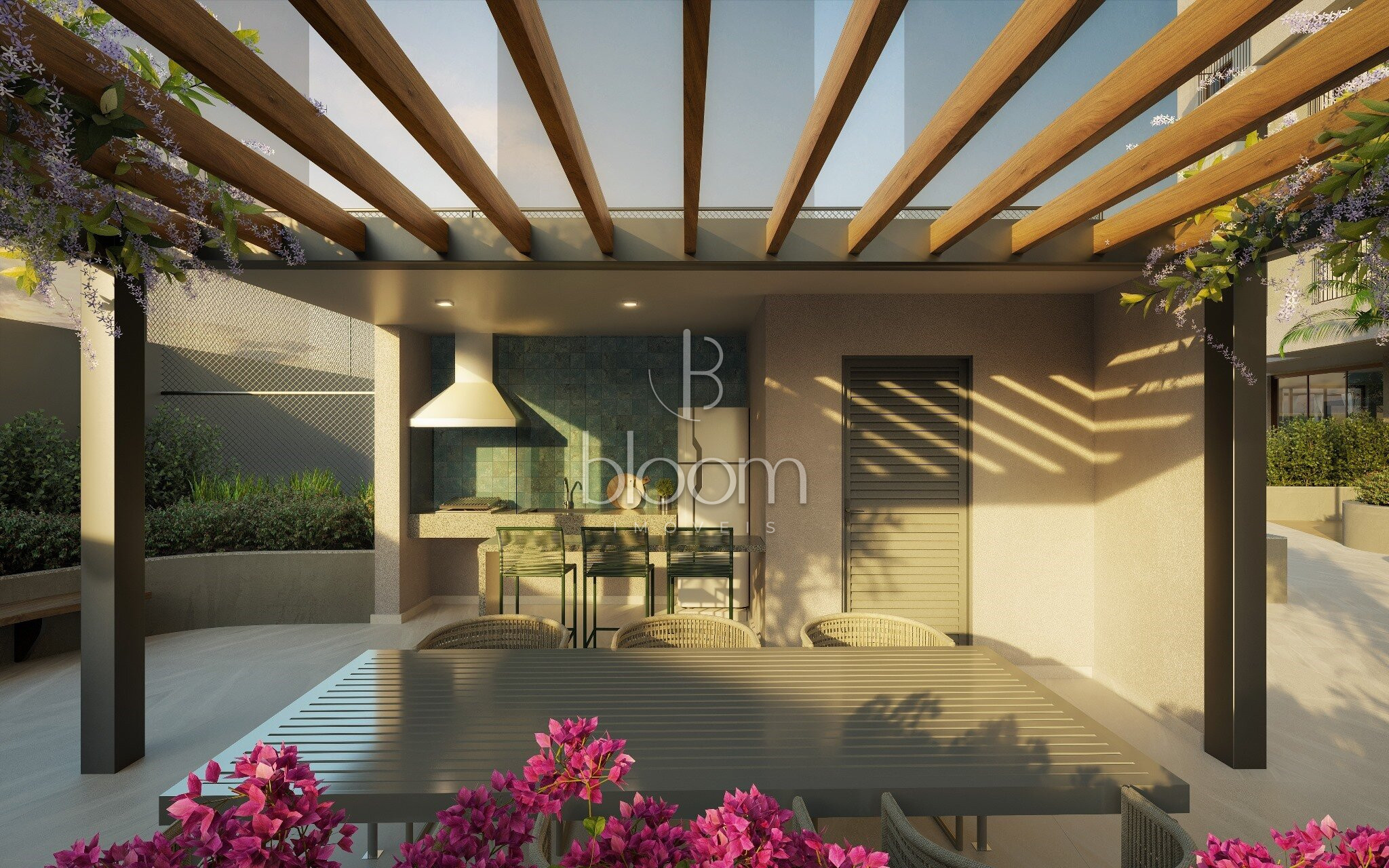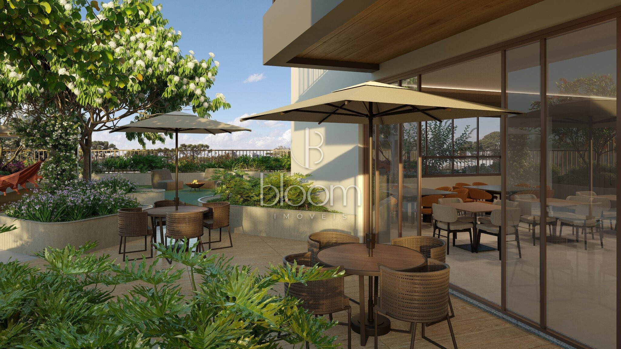 Portaria, Central de entregas e delivery, Mini market, Galeria de lojas, Hall de entrada, Pet care, Studio de yoga, Academia, Sala de massagem, SPA, Beauty center, Coworking, Brinquedoteca, Salão de festas com lounge externo, Espaço gourmet, Espaço pet externo, Espaço relax, Academia externa, Piscina adulta e infantil descoberta, Gazebos, Pet place, Solarium, Fire place, Playground, Quadra poliesportiva, Redário, Jardim, Horta e pomar, Painéis fotovoltaicos, Gerador de emergência, Garagem com piso epoxi, Bicicletário com oficina, Carregador para carro elétrico (1 por unidade).