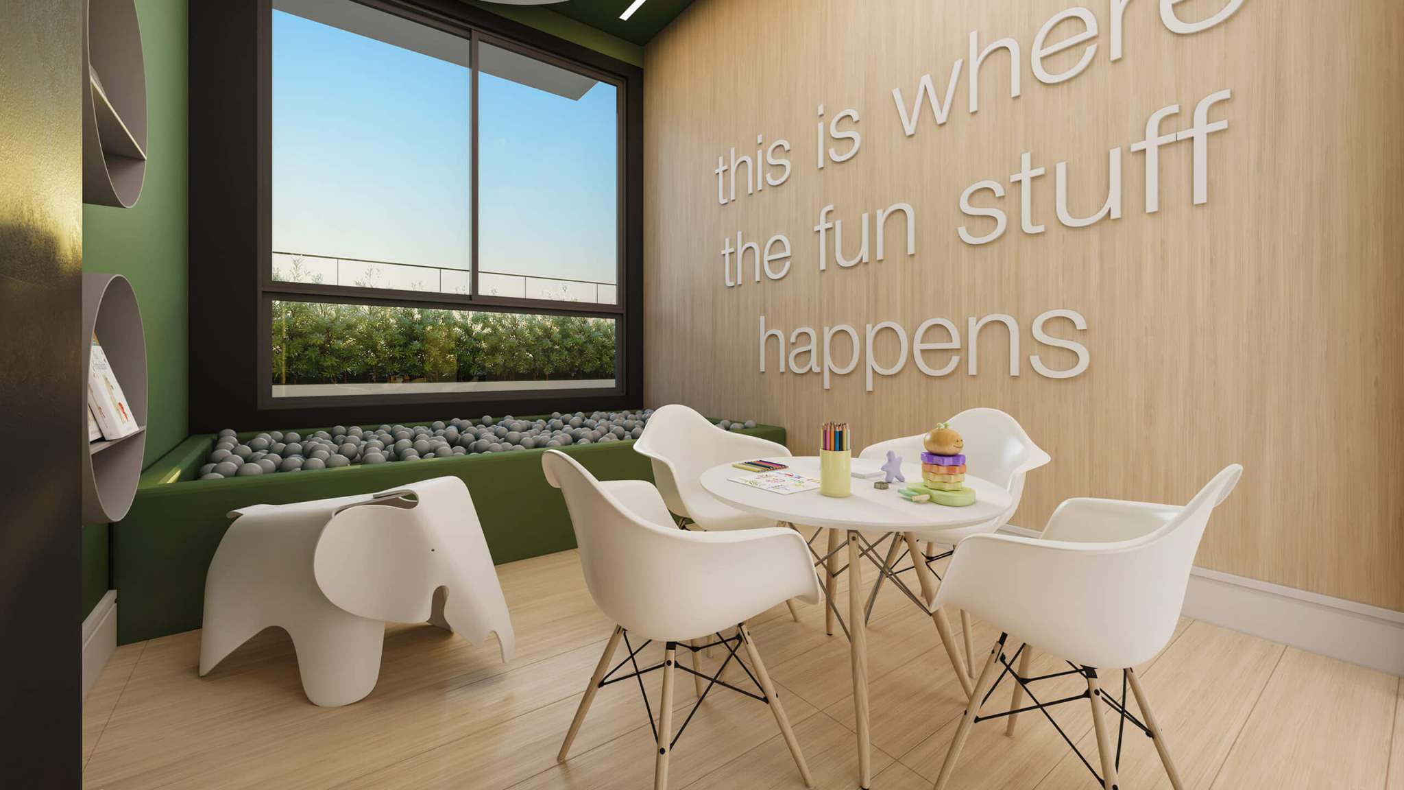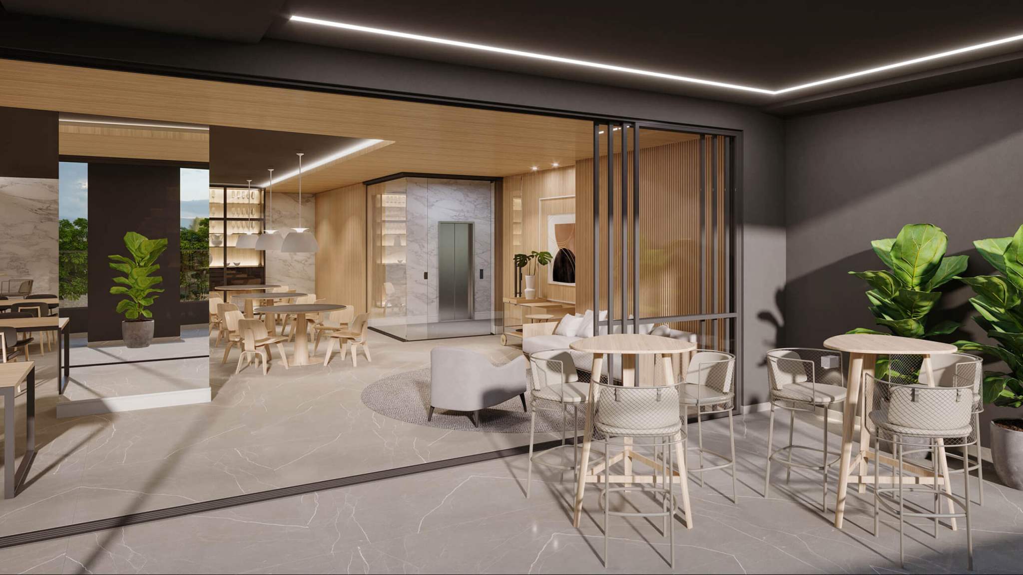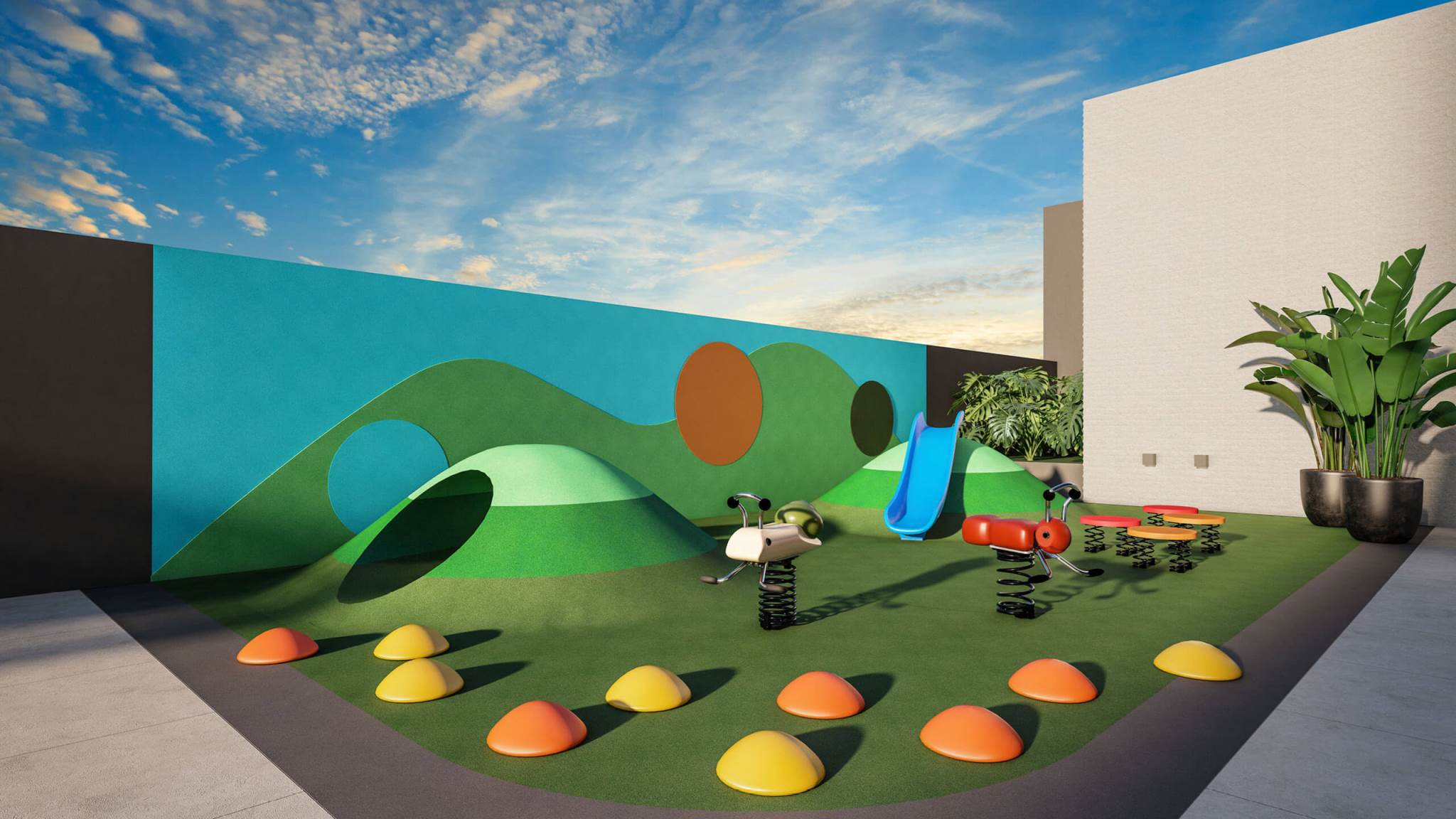 Guarita, Hall social e portaria, Sistema de câmeras de segurança, Infraestrutura para Wifi no térreo, Central de delivery, Piscina coberta e aquecida, Plaenge Parking Design (Piso epóxi na garagem e projeto personalizado de sinalização), Infraestrutura para abastecimento de veículos elétricos nas garagens (1 ponto por apartamento), Bicicletário, Espaço gourmet com lounge, 2 espaço kids, Salão de festas com lounge e copa, Lounge externo, Playground, Fitness, Solarium, Sauna.