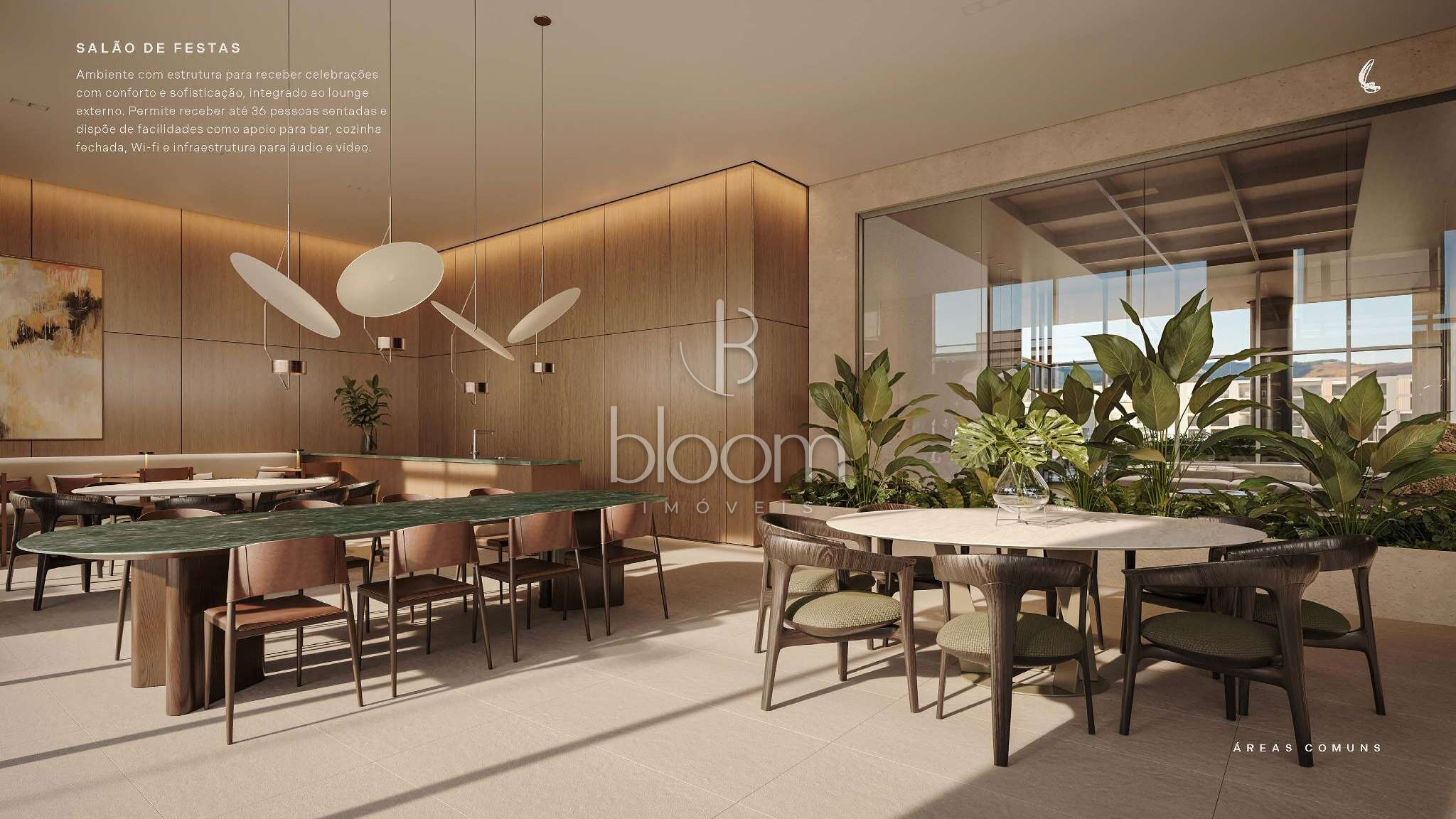 Port-cochère, Guarita blindada, Eclusa social e de serviço, Central de entregas e delivery, Lobby, Hall de entrada, Jardim, Espaço gourmet, Salão de festas, Lounge externo, Miniquadra, Playground, Espaço pet, Horta, Praça central, Fireplace, Brinquedoteca, Academia, Piscina coberta, Piscina descoberta, Bicicletário com oficina e box de lavagem, Um carregador para carro elétrico por unidade, Sala de apoio para funcionários, Placas fotovoltaicas para áreas comuns, Poço artesiano, CFTV e sensores, Gerador de energia.