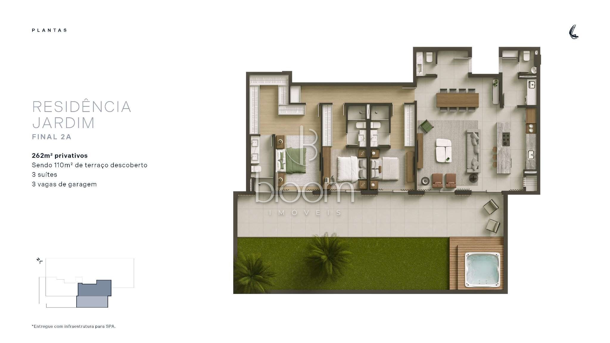 151,88m² privativos + 110,76m² de jardim externo exclusivo = 262,64m² de área privativa