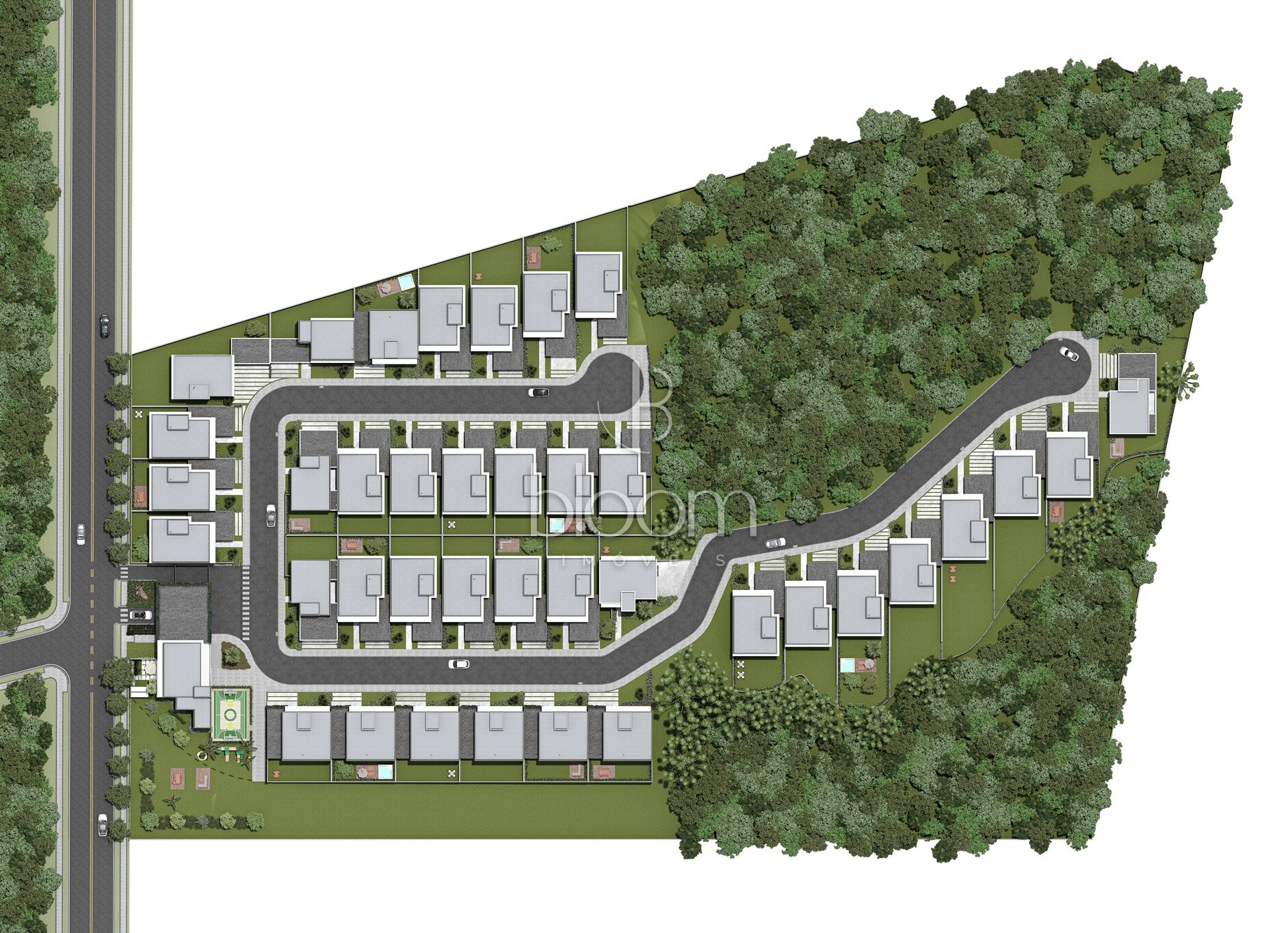 Guarita, Sistema de eclusa, Infraestrutura para portaria remota, 3 acessos: moradores, pedestres e visitantes, Salão de festas com lounge externo, Espaço gourmet, Quadra poliesportiva, Playground, Academia, Brinquedoteca, Sistema fechado de câmeras, Cerca elétrica perimetral, 11 mil m² de bosque preservado, Estacionamento para visitantes, Rede elétrica subterrânea, Central de gás no condomínio, Espaço para instalação de mini market.