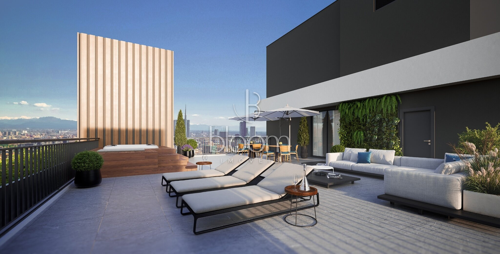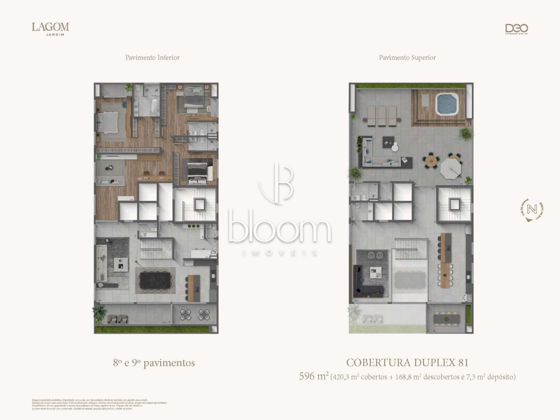 420,30m² de apartamento + 168,80m² de terraço + 7,30m² de depósito = 596m² privativos