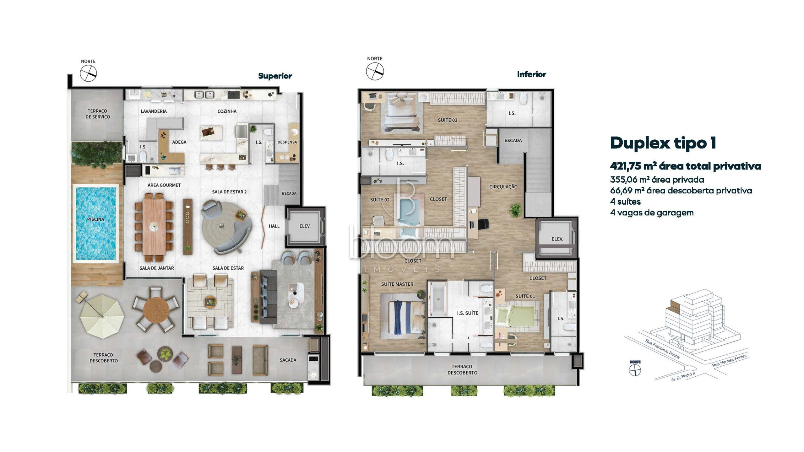 355,06m² de apartamento + 66,69m² de jardim exclusivo = 421,75m² privativos