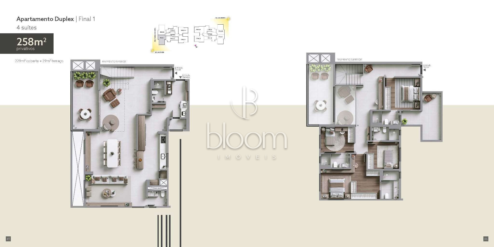 228,83m² de área coberta + 29,33m² de terraço = 258,16m² de área privativa