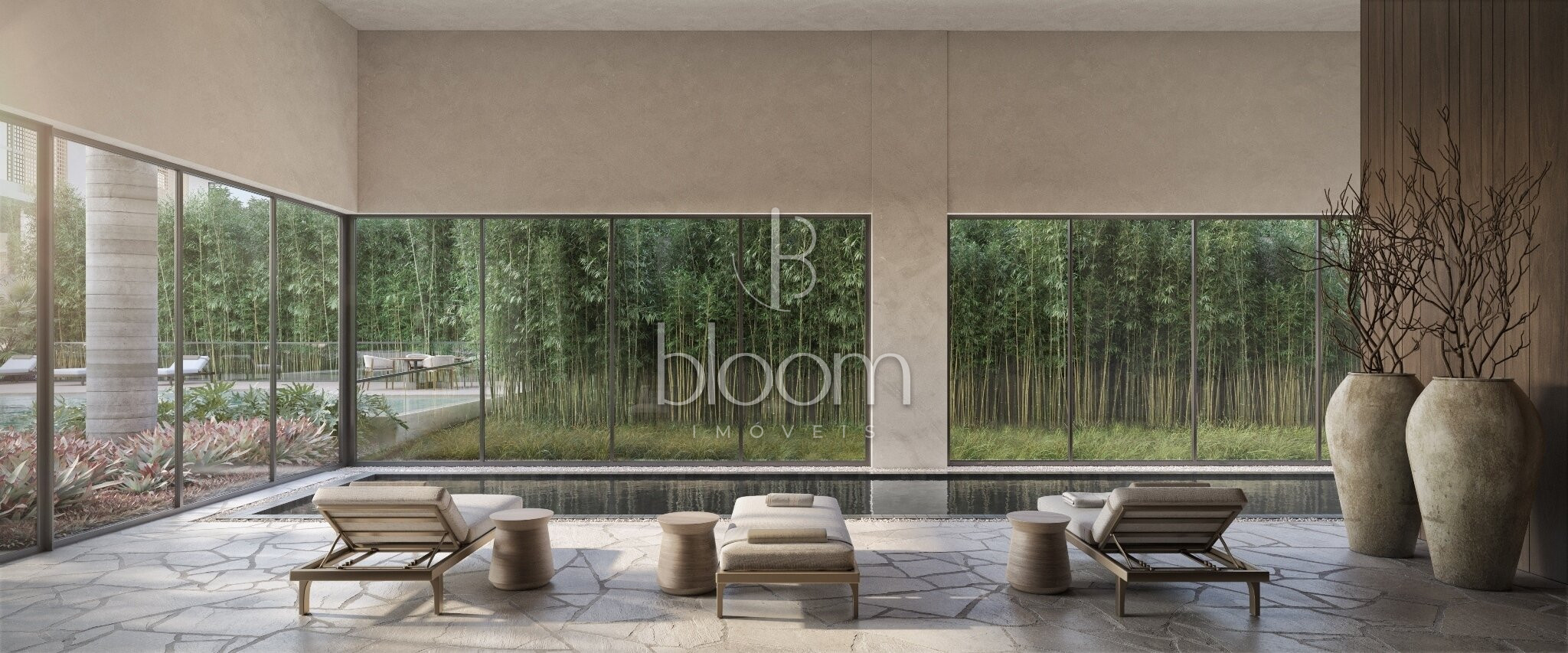 Guarita blindada, Portaria 24hs, Sistema de eclusa, Praça central, Espelho d'água, Hall de entrada, Lobby, Central de entregas e delivery, Concierge, Fireplace, Piscina coberta aquecida adulta e infantil, Piscina externa adulta e infantil, Sala de massagem, Salão de festas, Espaço gourmet, Brinquedoteca, Academia, Miniquadra, Espaço beauty, Espaço pet, Bicicletário, Bosque privativo, Projeto de segurança Haganá, Garagem com pintura epóxi, Estacionamento para visitantes, Placas fotovoltaicas para as áreas comuns, Ponto de carregamento para carro elétrico.