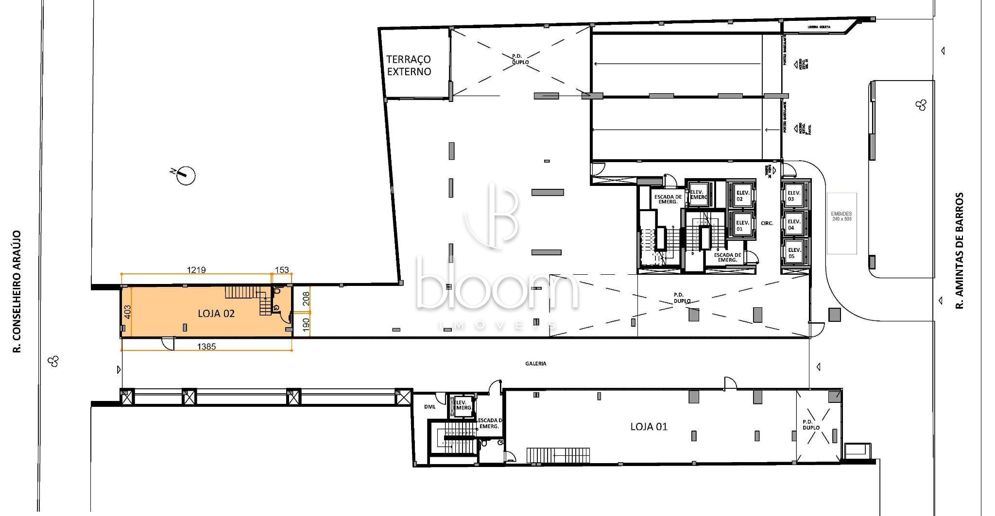 Acesso pelo térreo na Rua Conselheiro Araújo tanto pela Rua Amintas de Barros