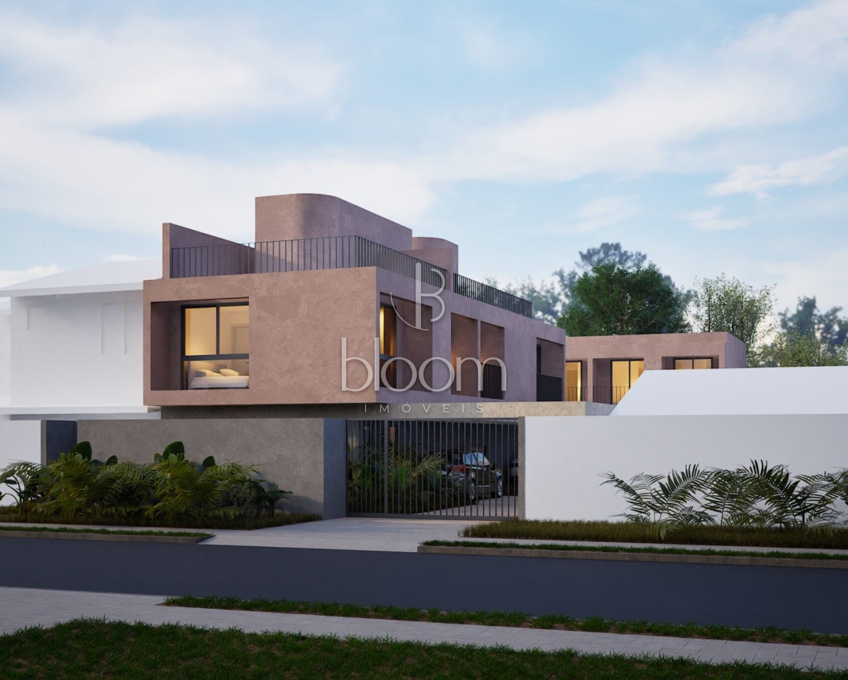 Acesso independente para os sobrados internos por meio de portão eletrônico