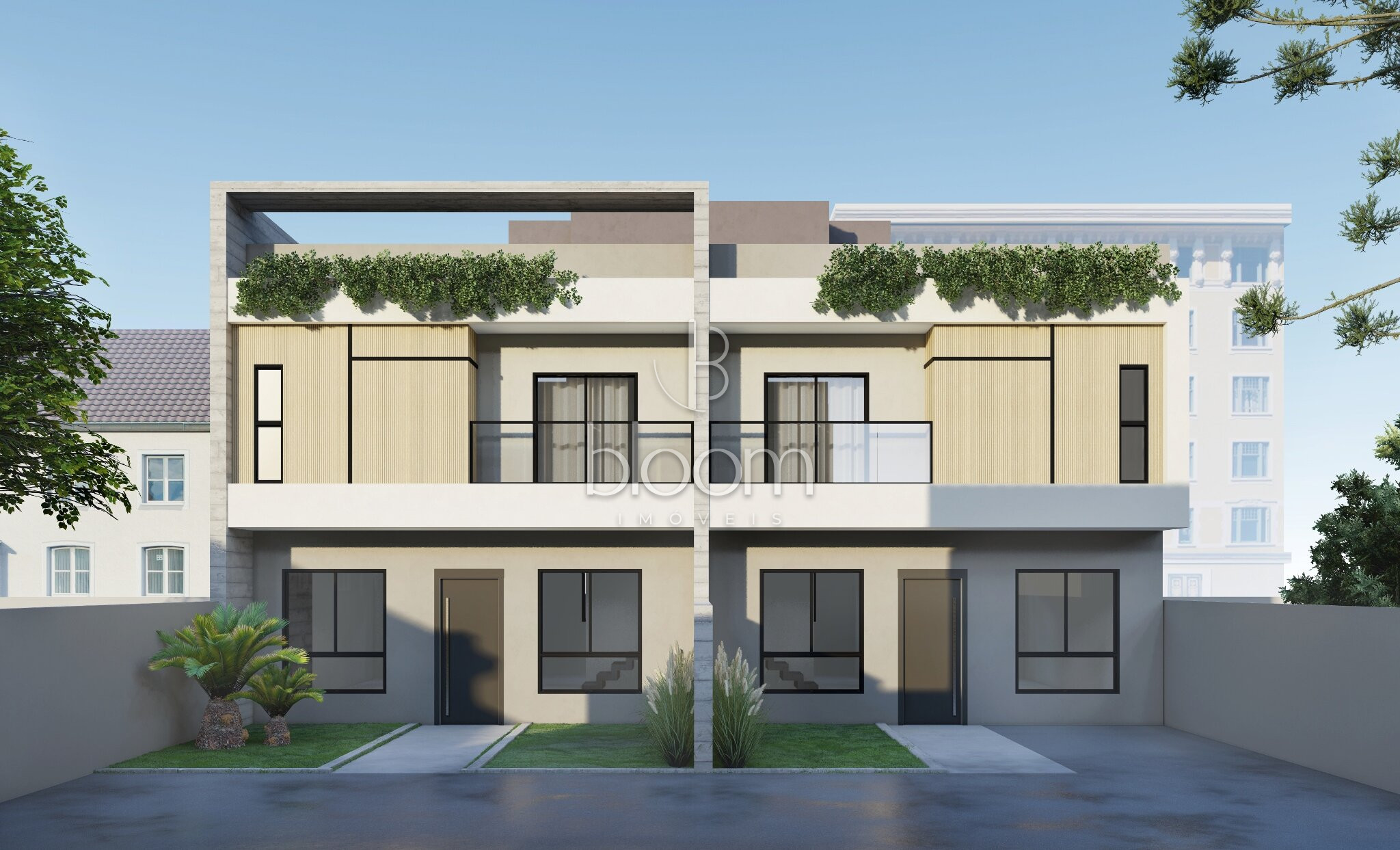 Acesso independente para os sobrados internos por meio de portão eletrônico