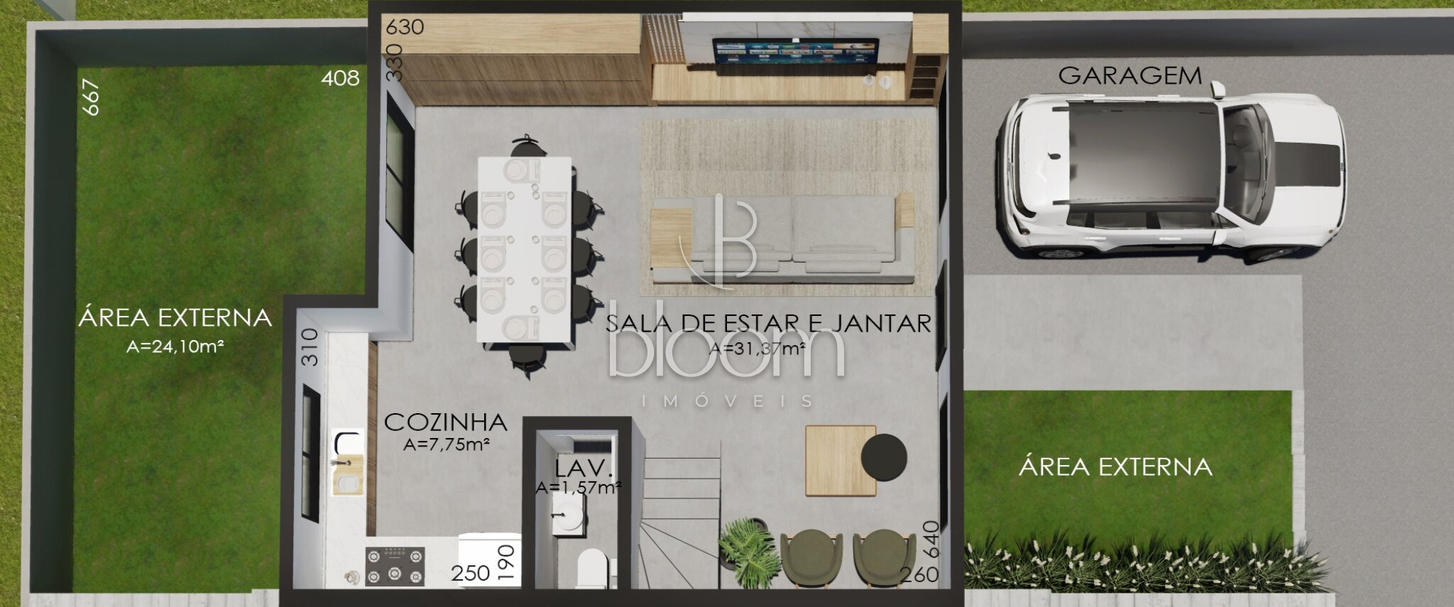 Jardim externo com 24,10m²