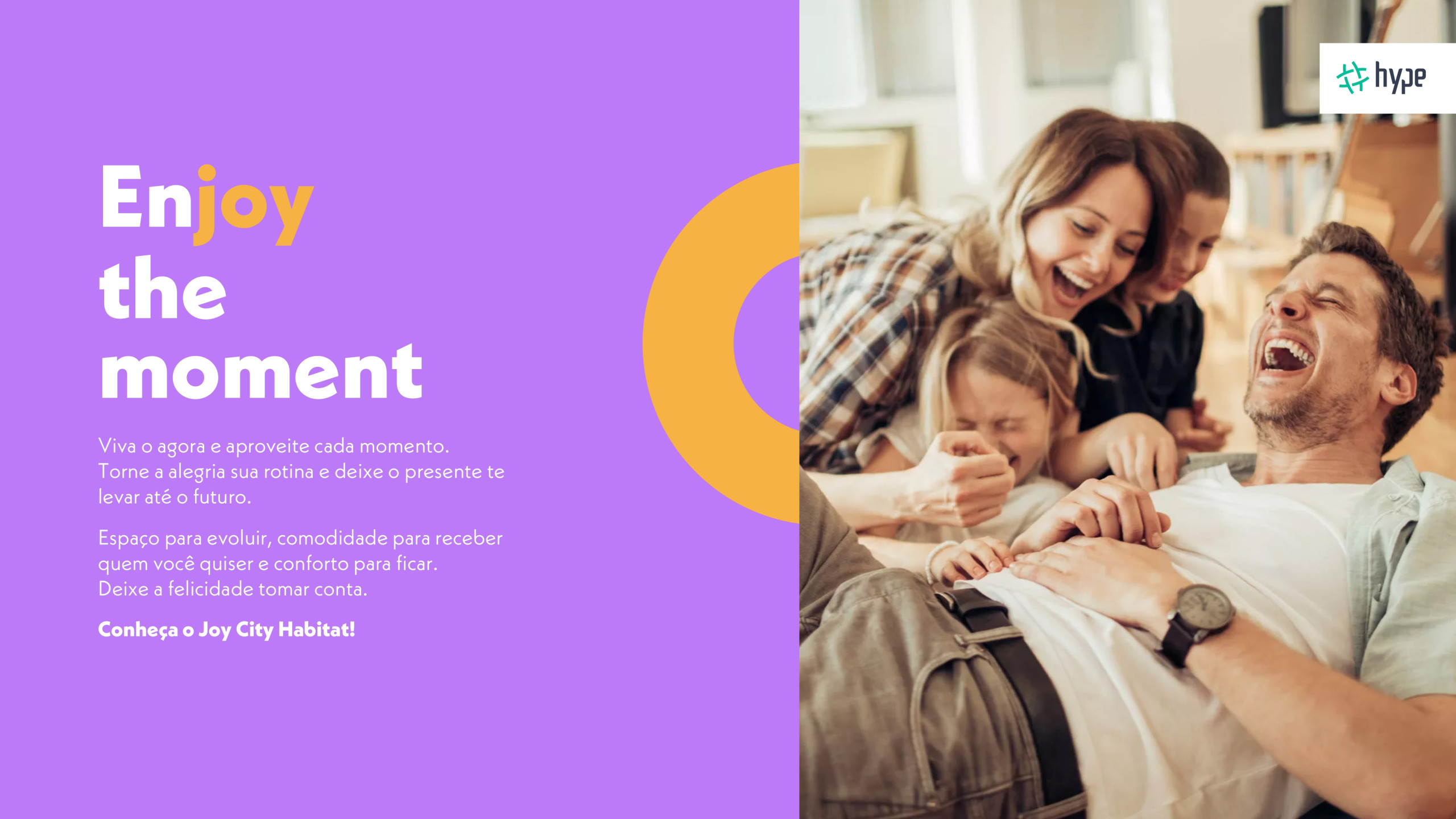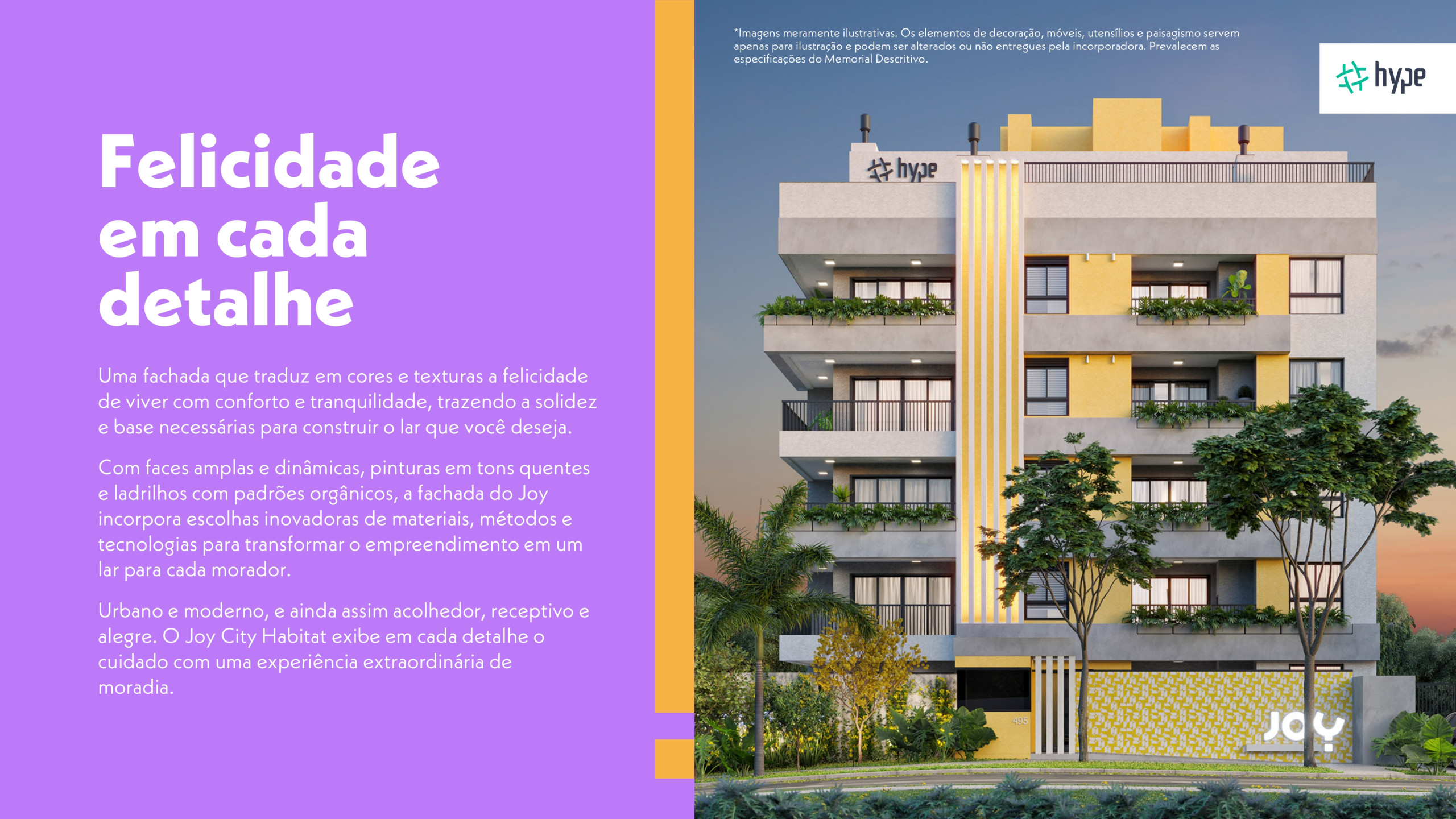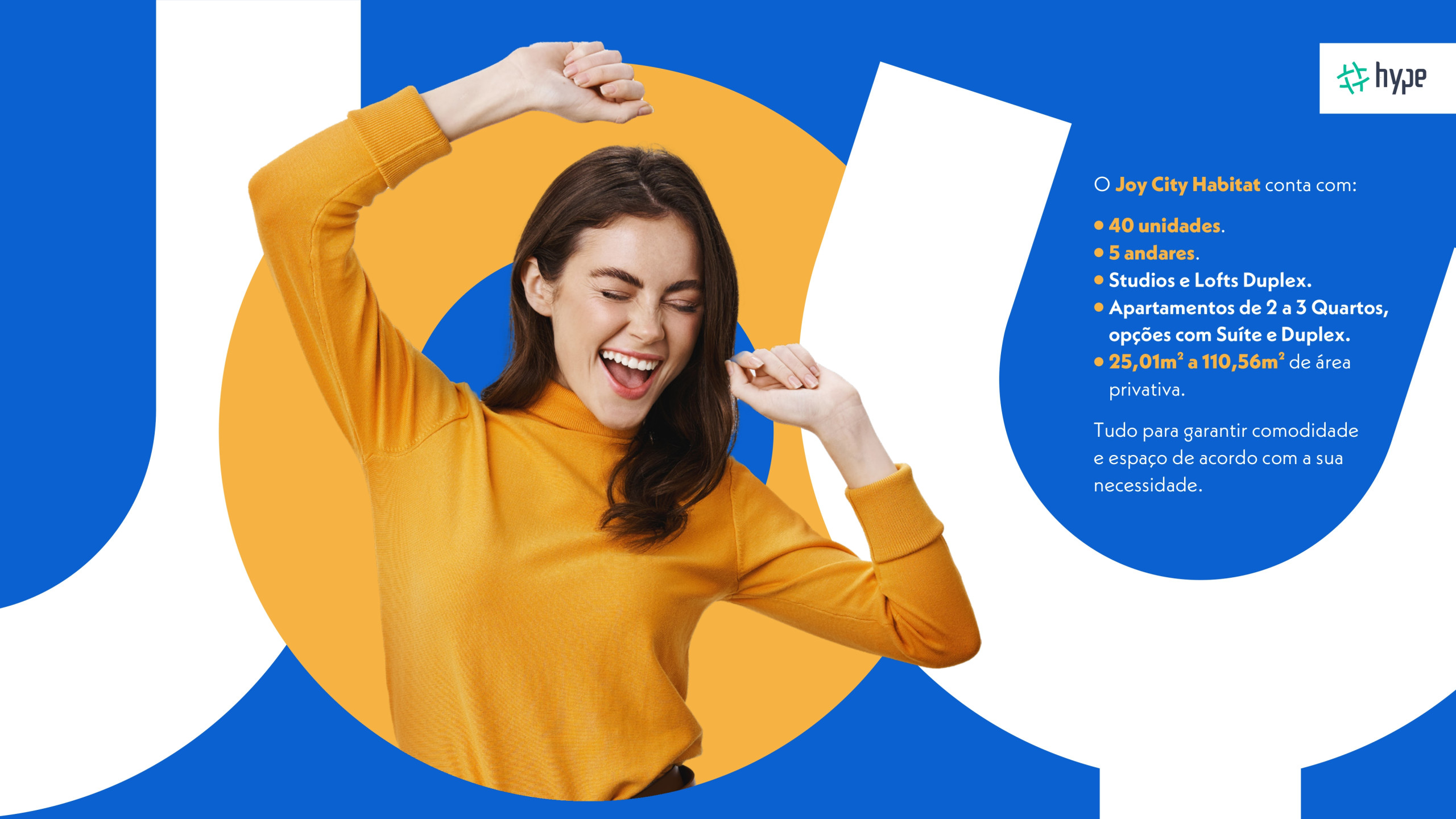 Viva o agora e aproveite cada momento. Torne a alegria sua rotina e deixe o presente te levar até o futuro. Espaço para evoluir, comodidade para receber quem você quiser e conforto para ficar. Deixe a felicidade tomar conta. Conheça o Joy City Habitat!