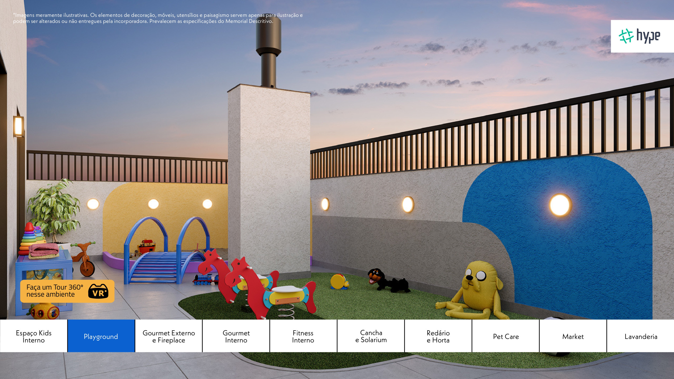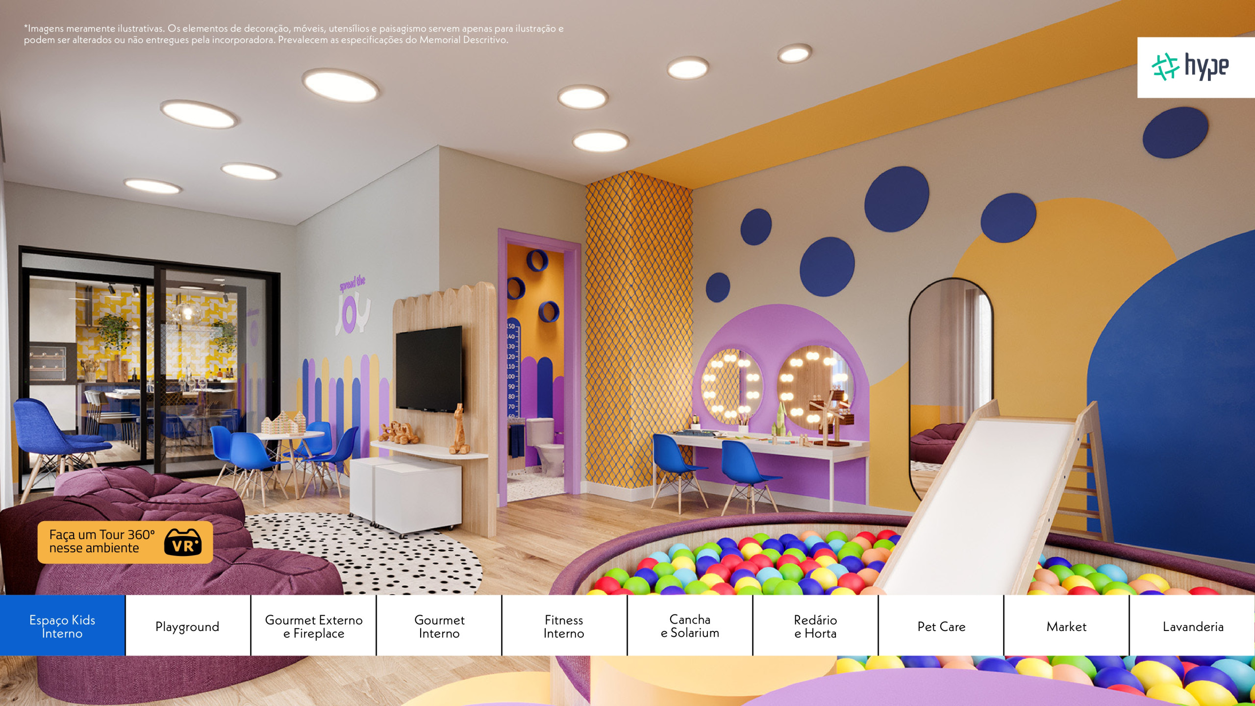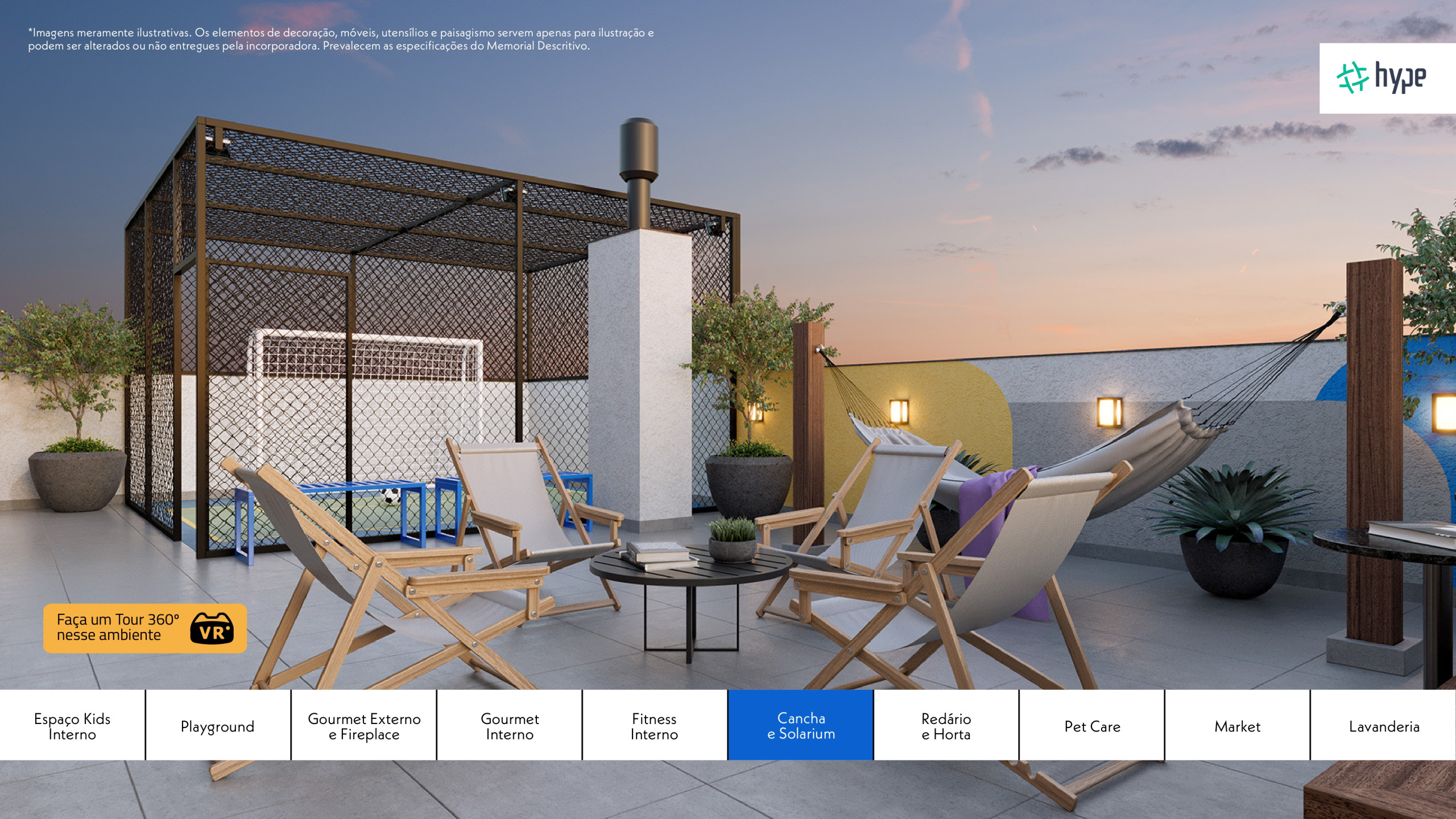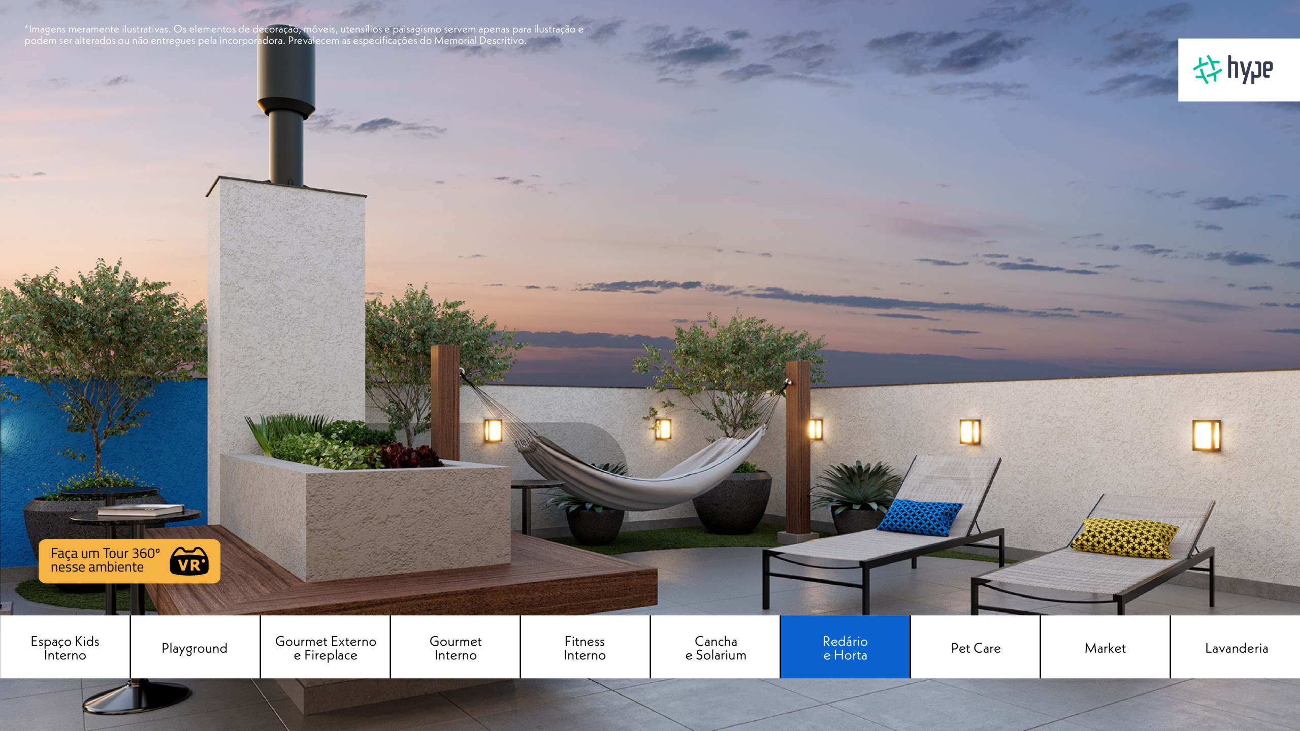 Guarita, Hall de entrada, Brinquedoteca, Mini mercado, Espaço gourmet, Espaço gourmet externo, solarium, Cancha, Redário e horta, Pet care, Lavanderia, Fitness, Espaço kids, Playground, Fireplace.