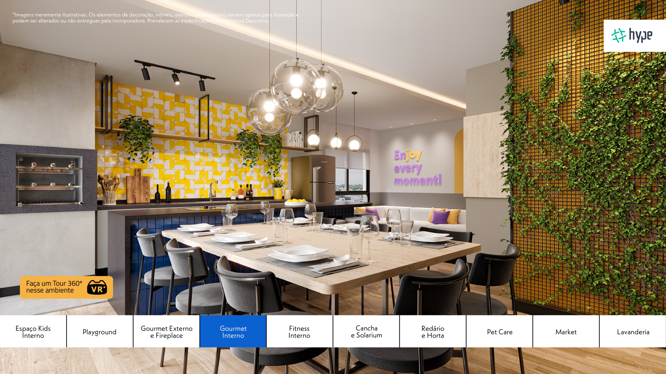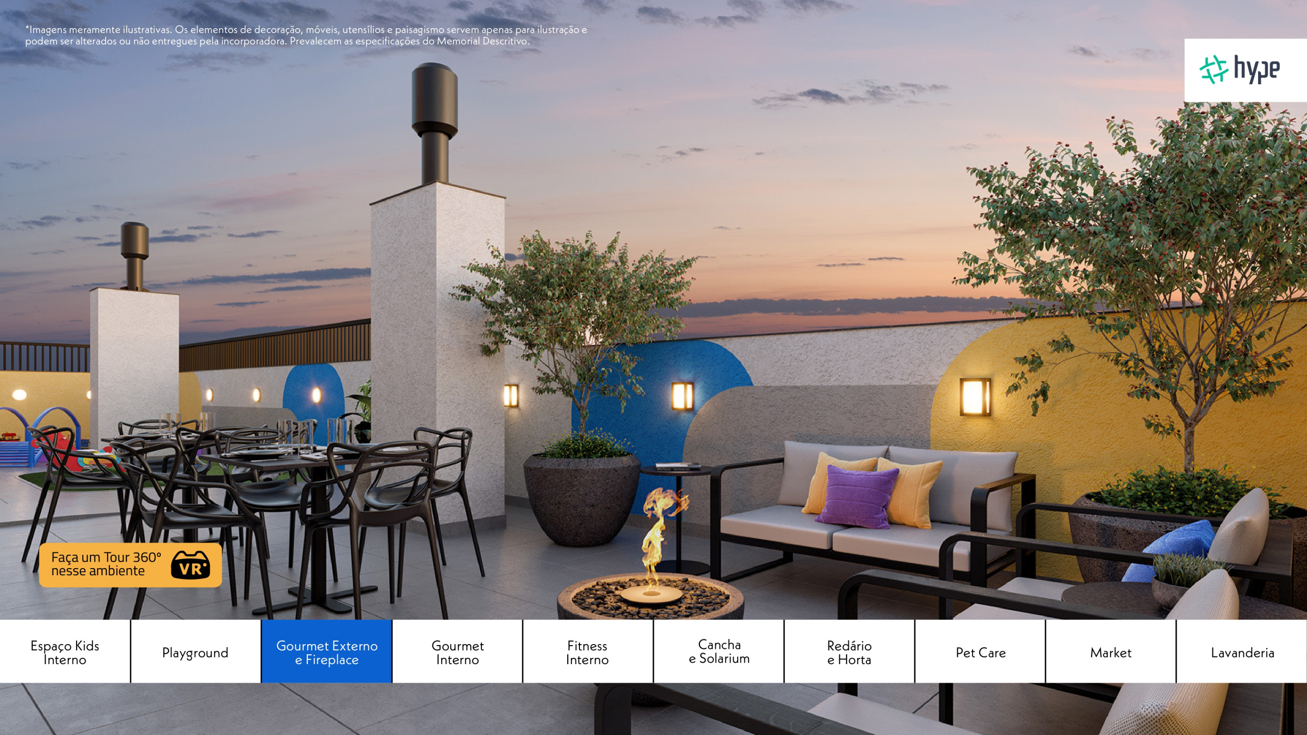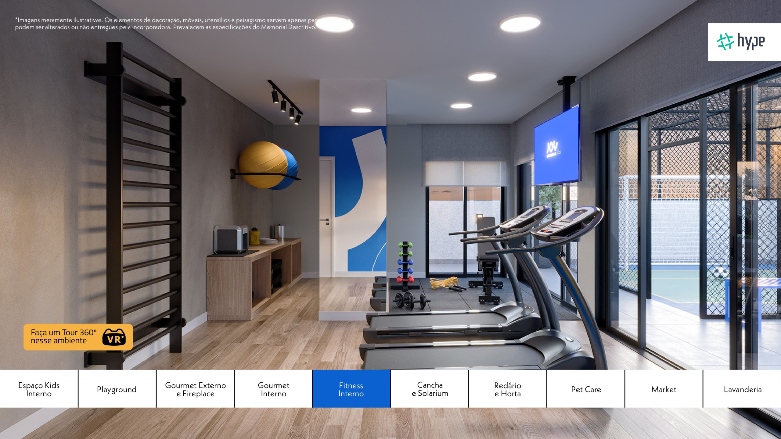 Guarita, Hall de entrada, Brinquedoteca, Mini mercado, Espaço gourmet, Espaço gourmet externo, solarium, Cancha, Redário e horta, Pet care, Lavanderia, Fitness, Espaço kids, Playground, Fireplace.