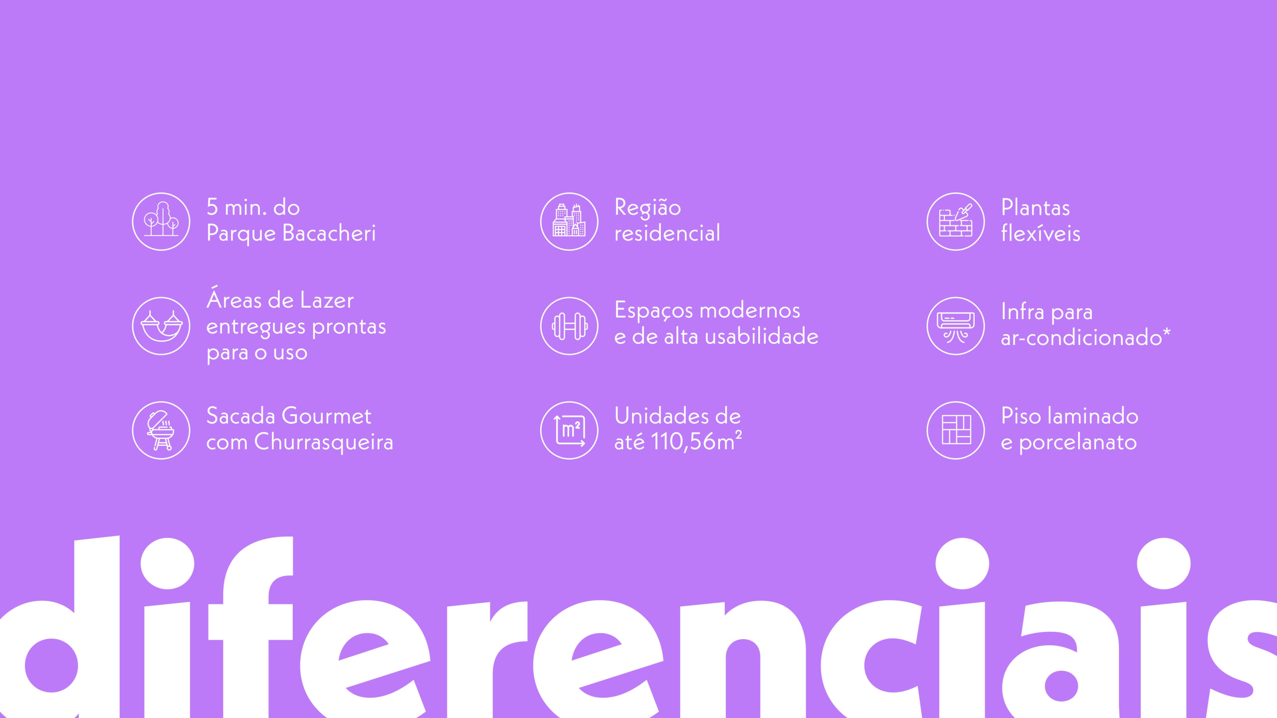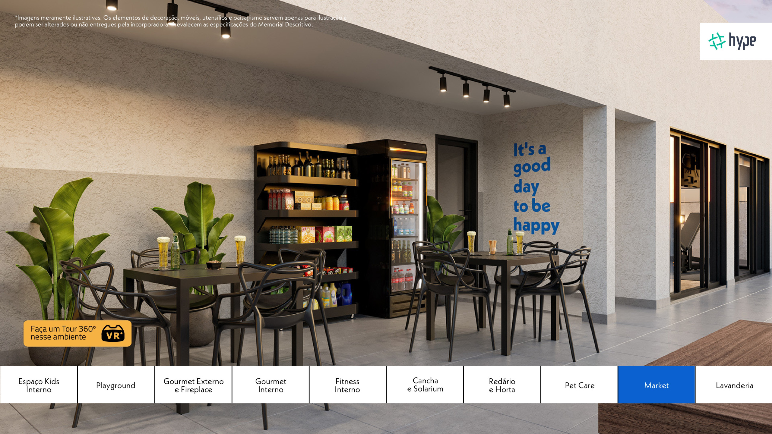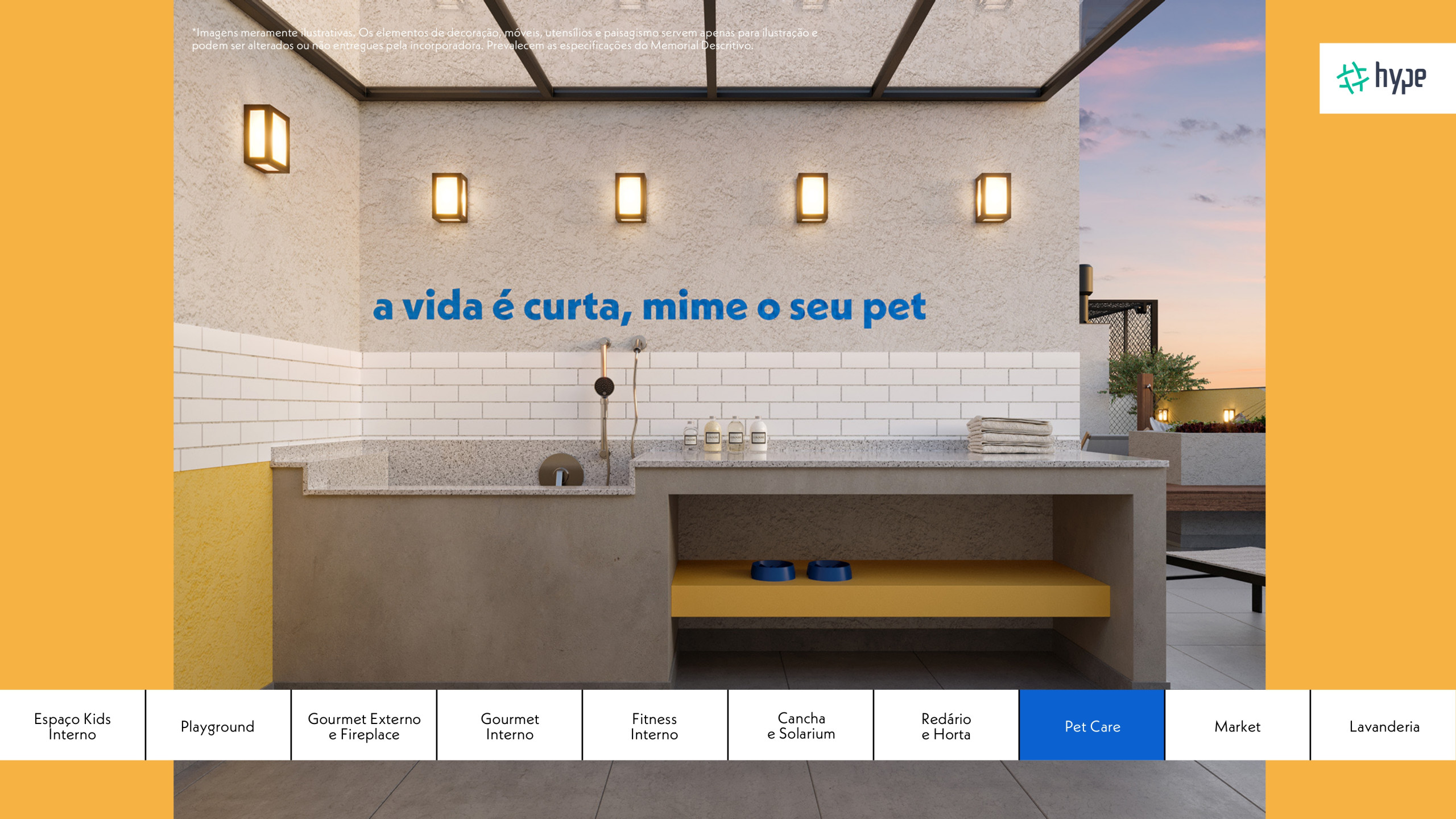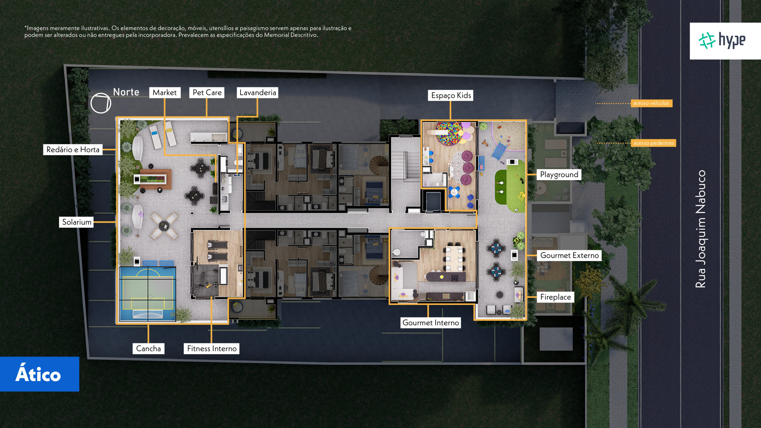 Guarita, Hall de entrada, Brinquedoteca, Mini mercado, Espaço gourmet, Espaço gourmet externo, solarium, Cancha, Redário e horta, Pet care, Lavanderia, Fitness, Espaço kids, Playground, Fireplace.