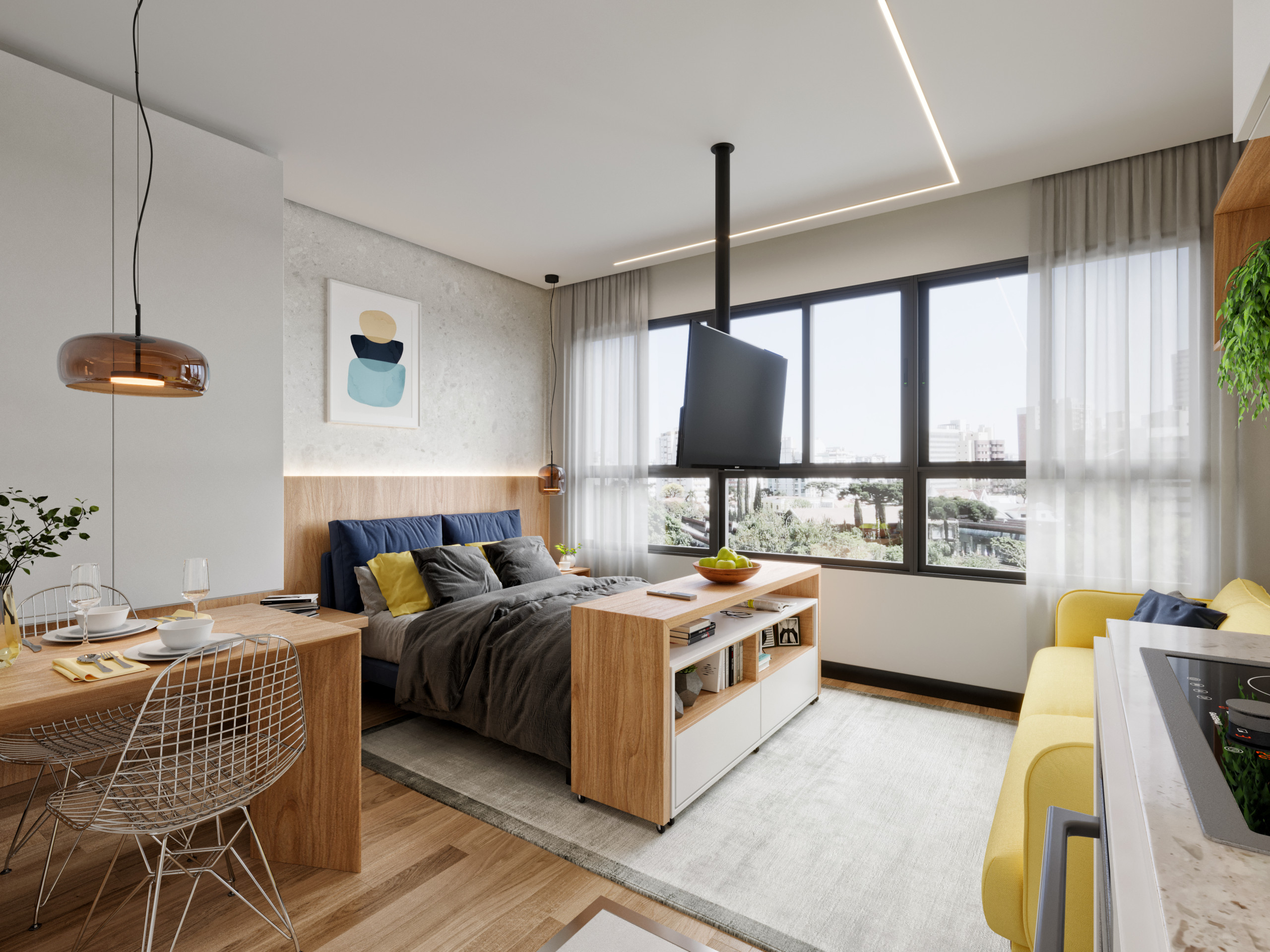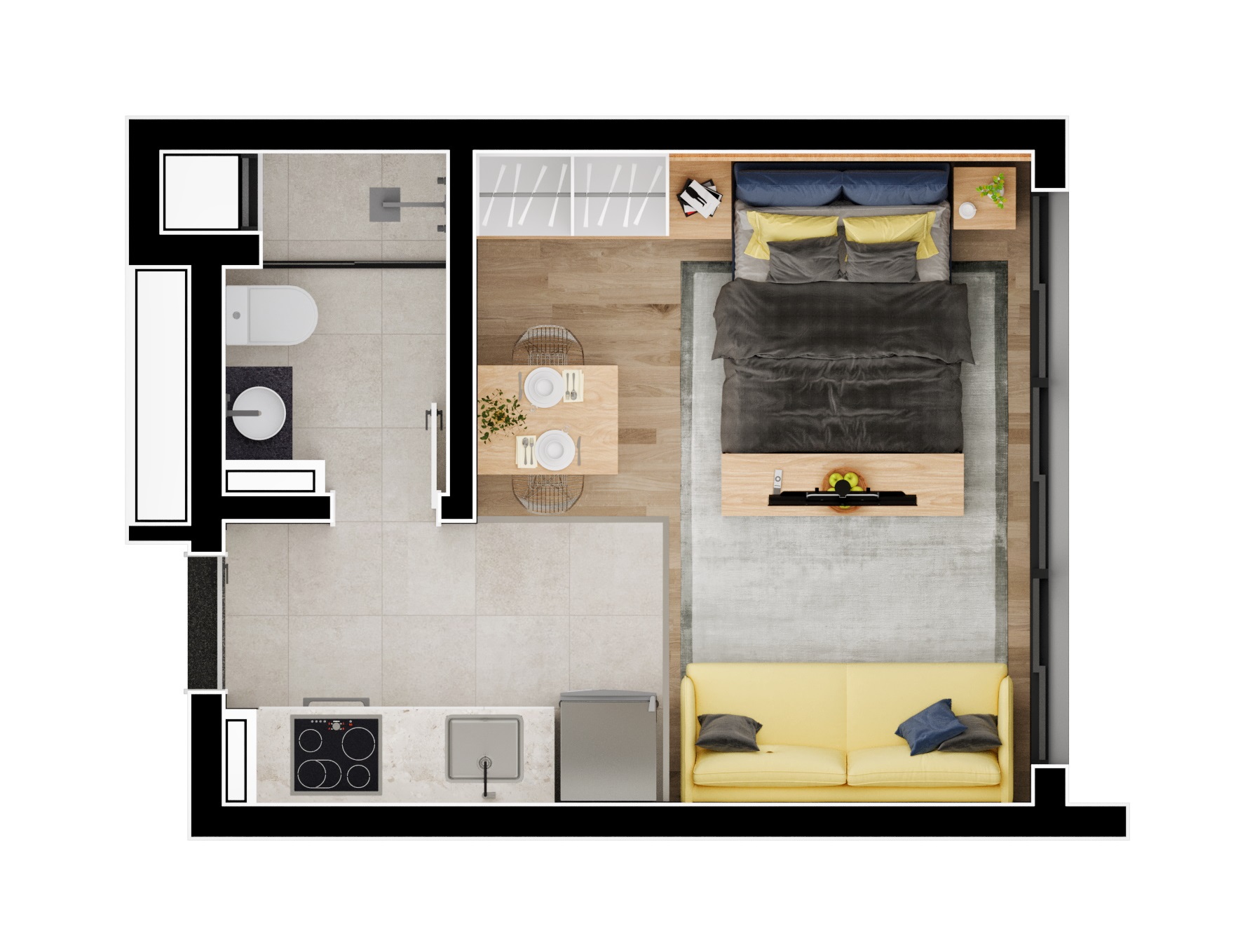 Studios e lofts duplex / Aptos de 2 a 3 quartos, opções com suíte e duplex.